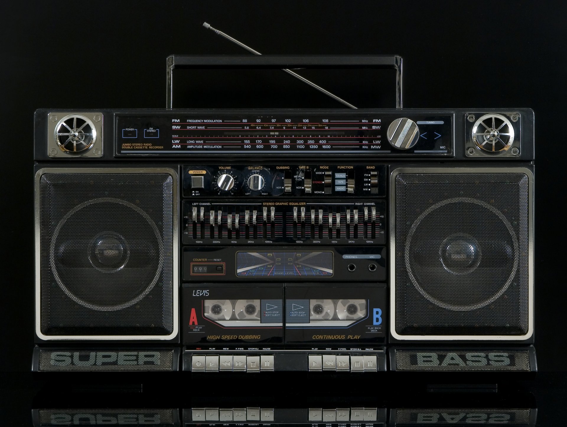 An old tape recorder with built-in speakers
