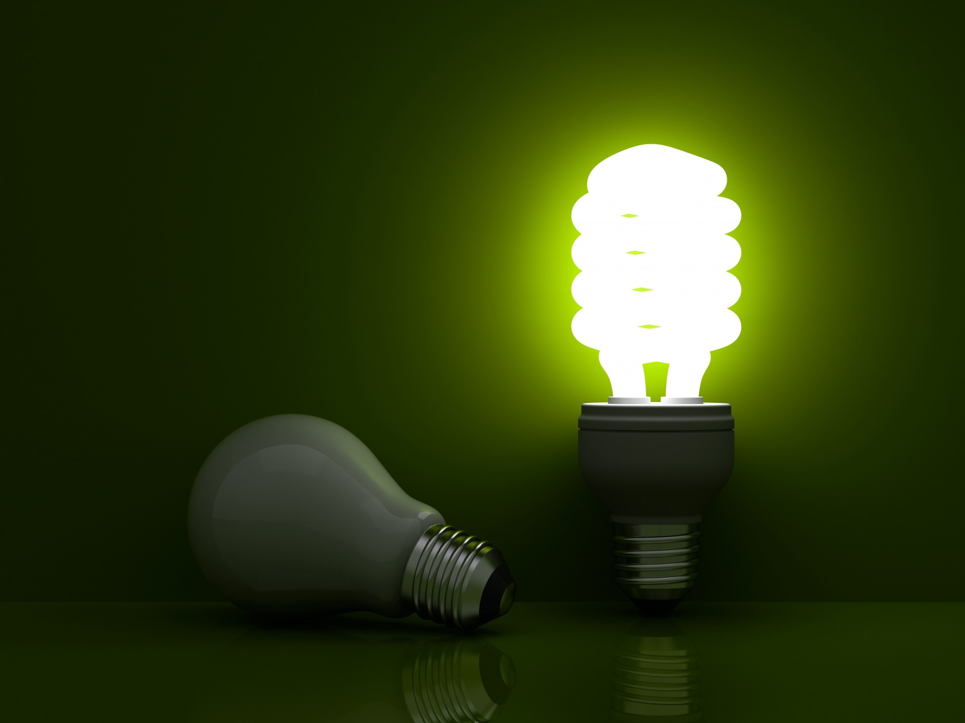 The light bulb is lying next to a burning energy-saving light bulb