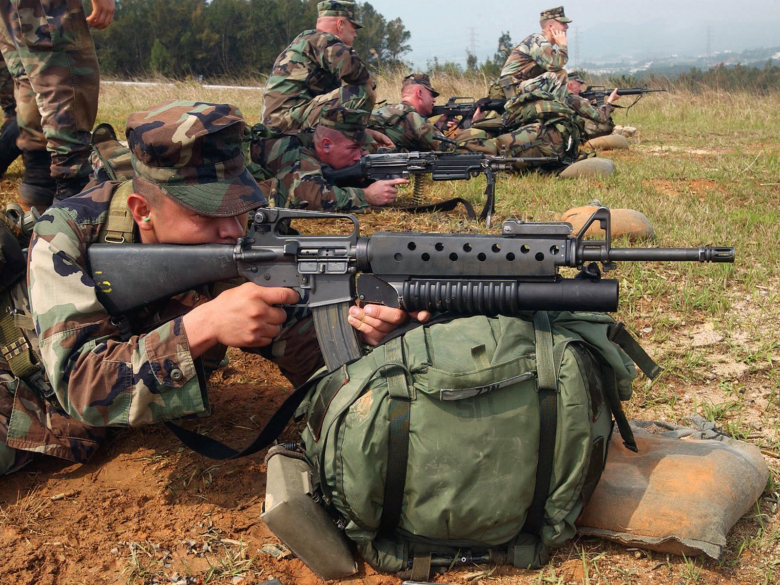 There are not many people shooting rifles at the training ground