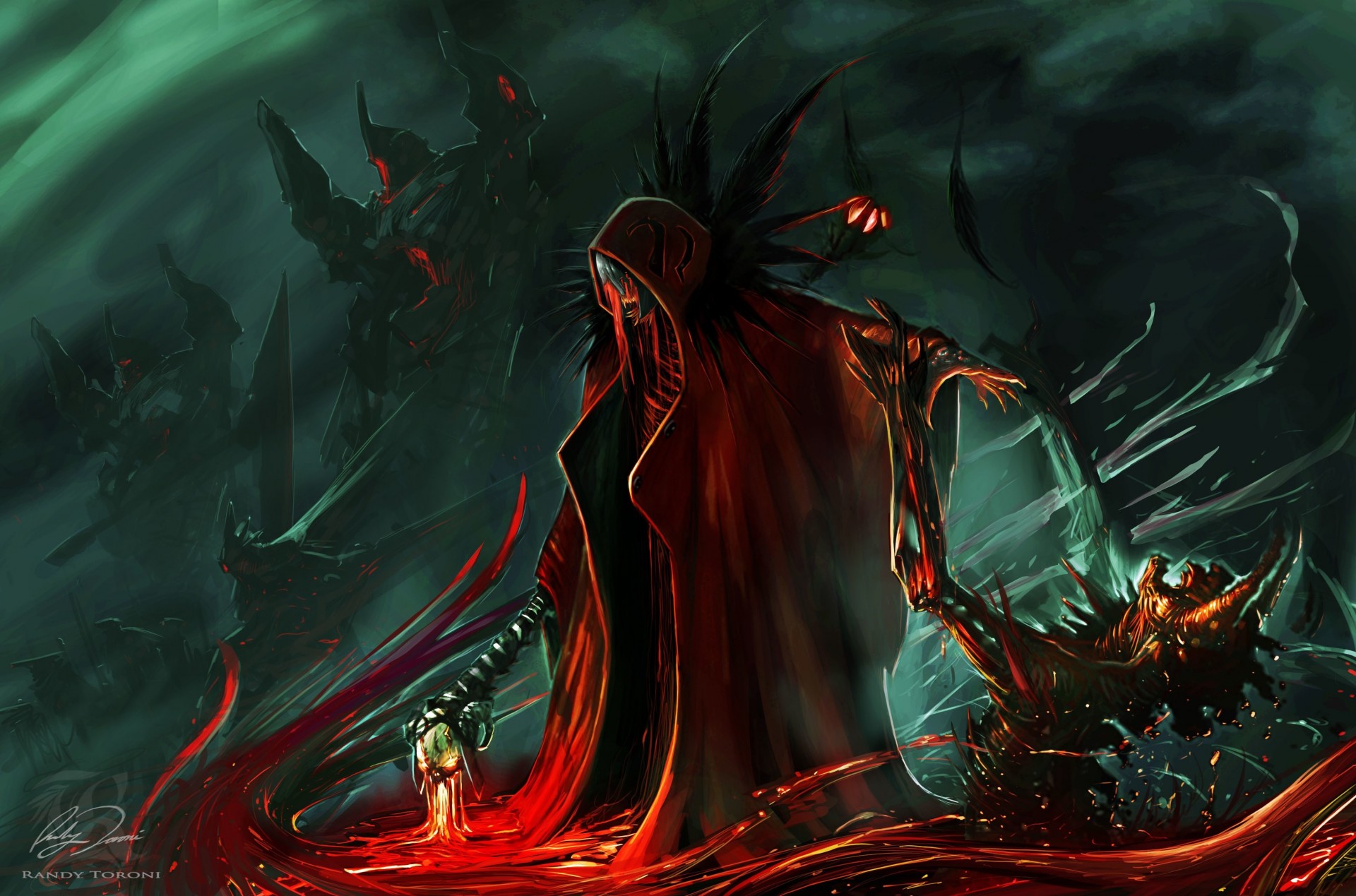 Drawing of a mage girl killing creatures