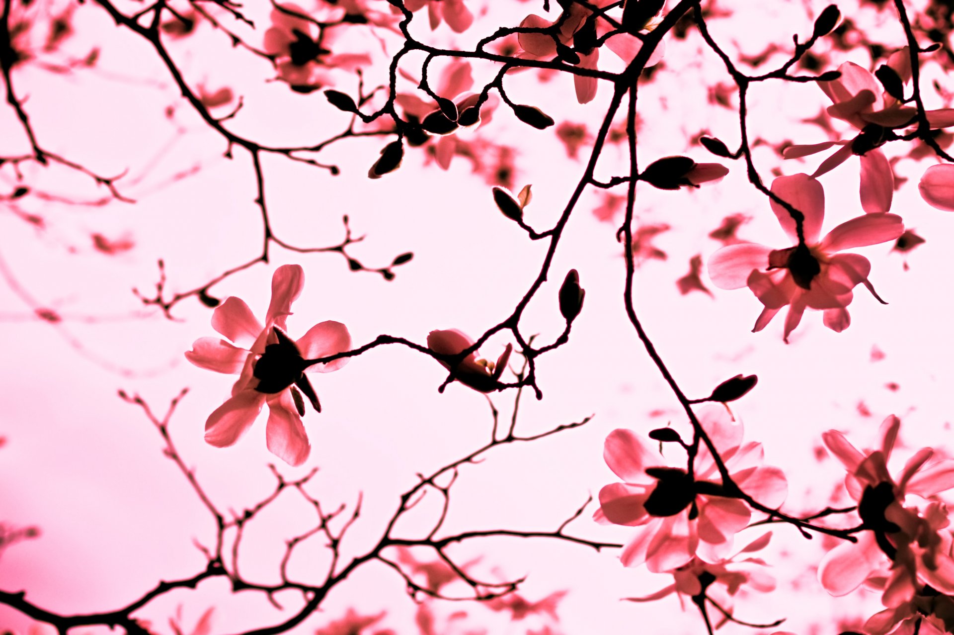 Branches of pink magnolia in bloom