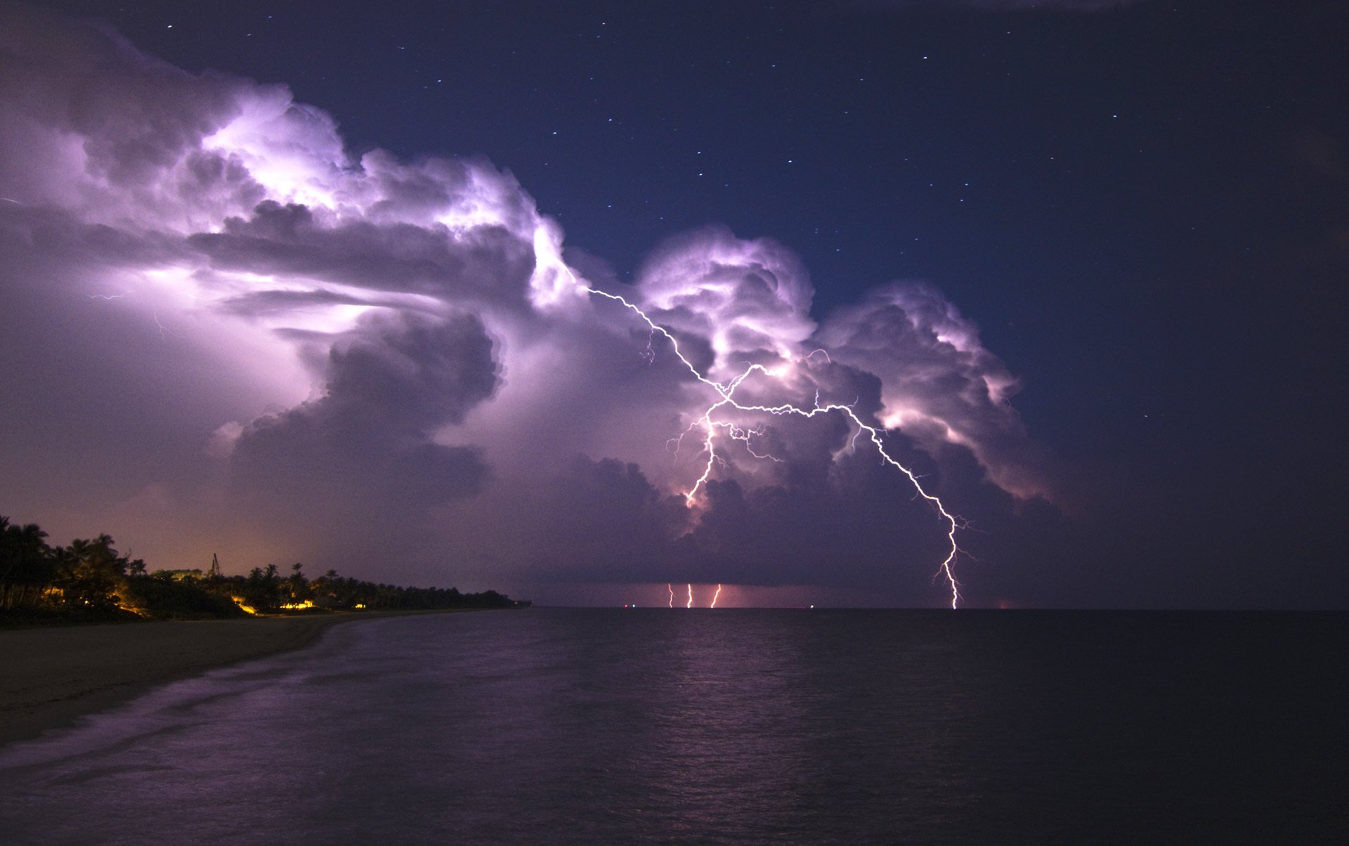 Majestic lightning over the coast of the city