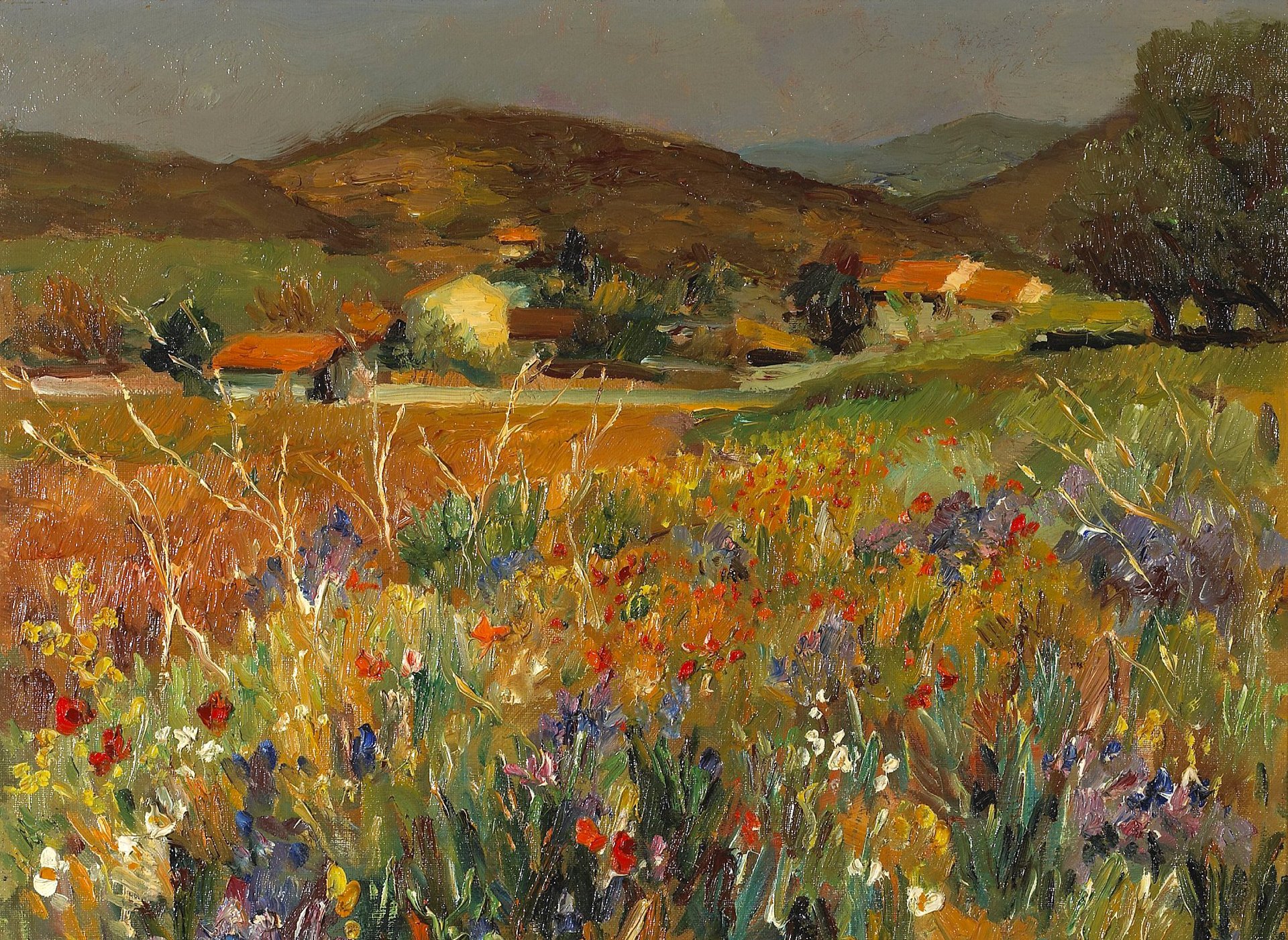 Oil landscape by Marcel Dif Field of flowers in Provence