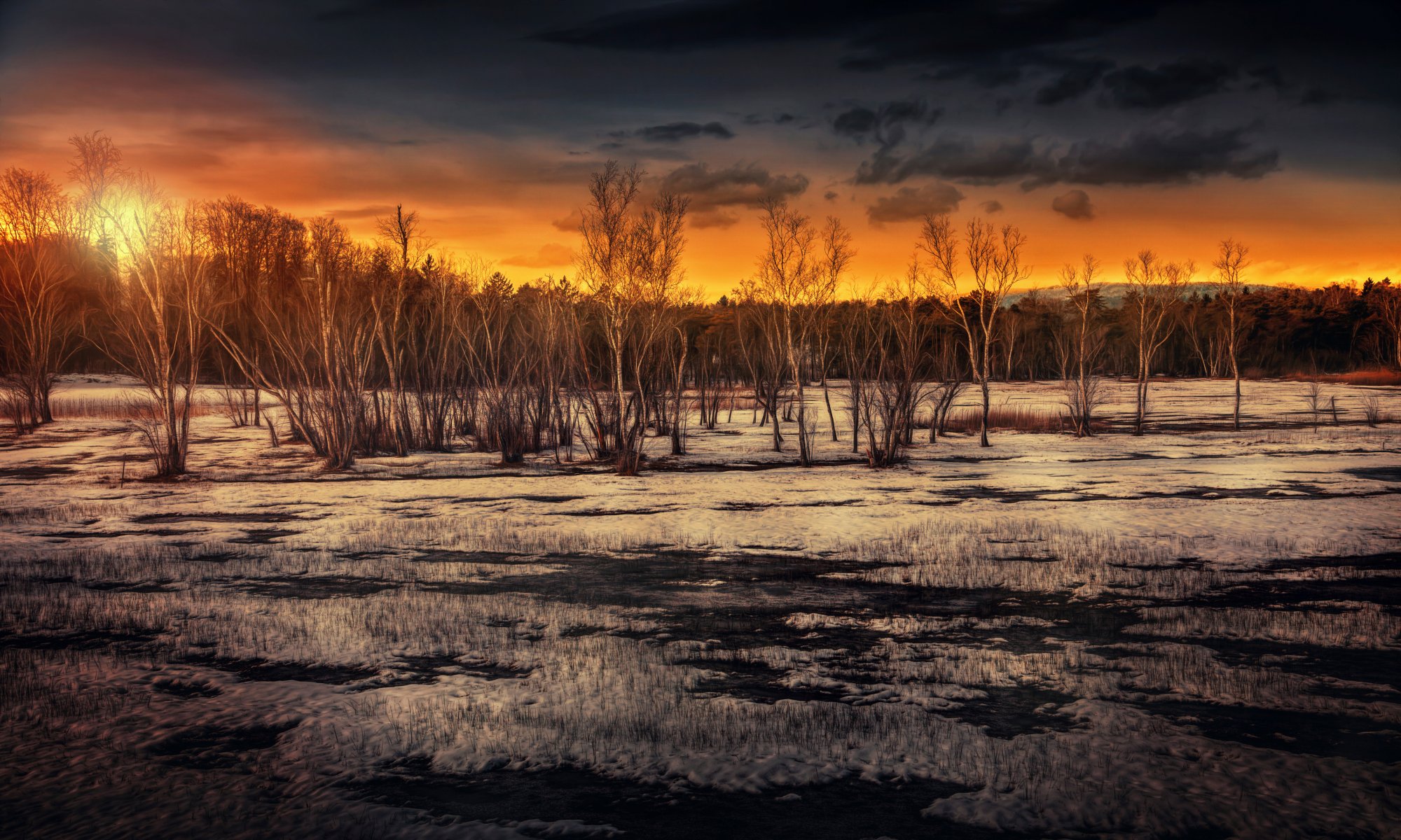 The sunset on the swamp is magnificent