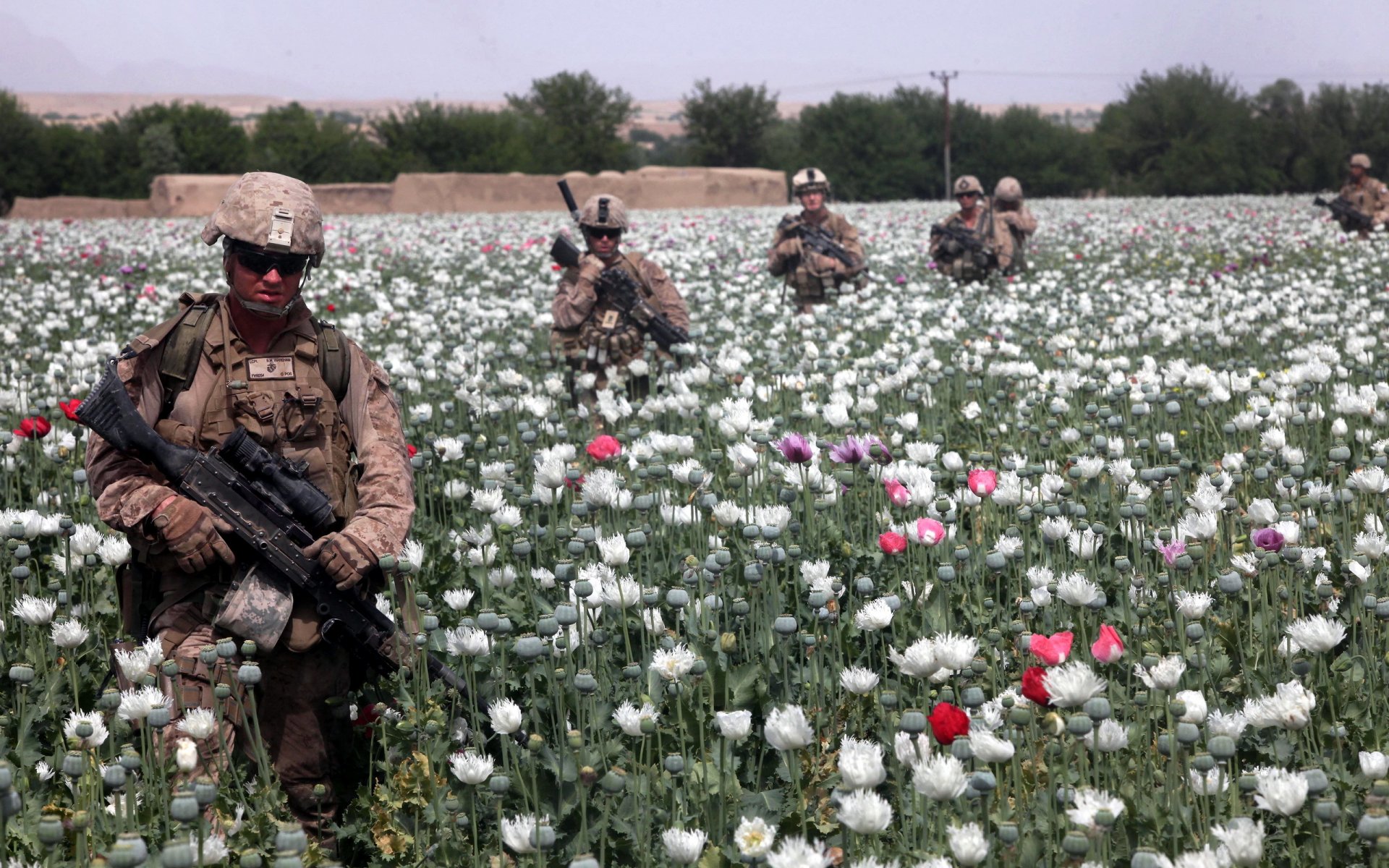 Soldiers in the field with weapons in colors