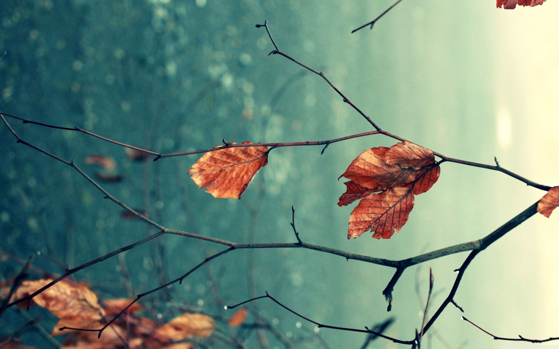 Macro shooting of an autumn leaf on a branch