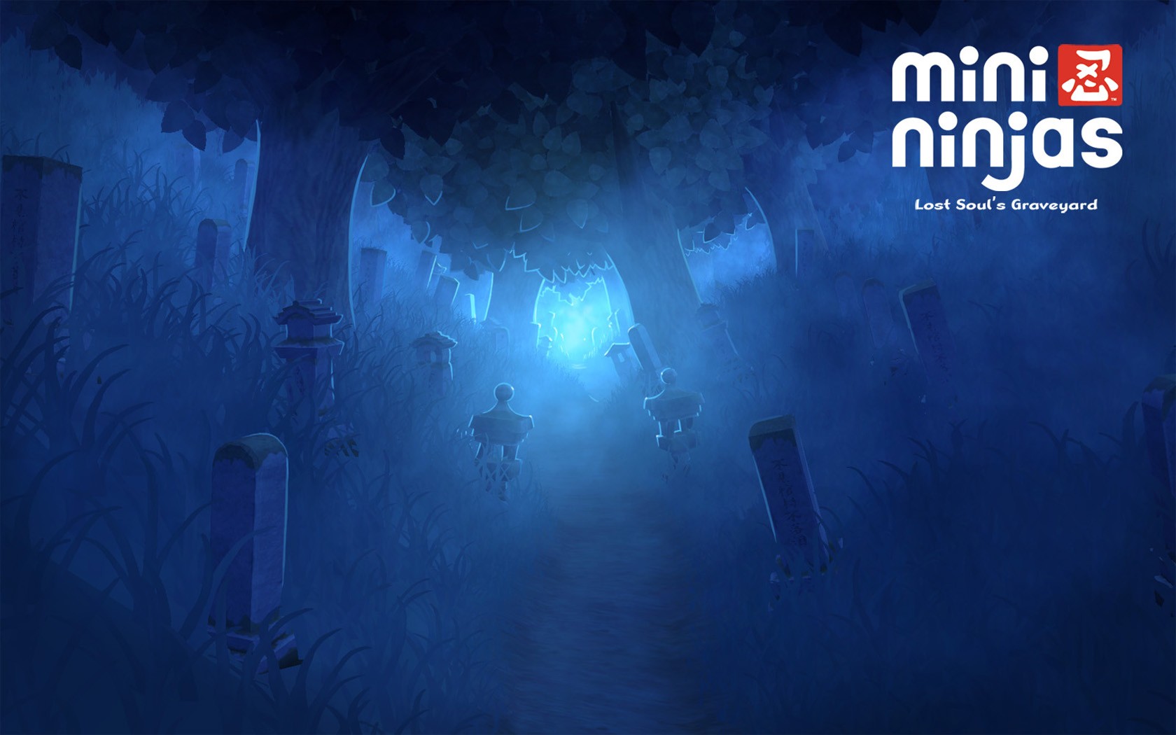 Mini ninja in the dark in the cemetery