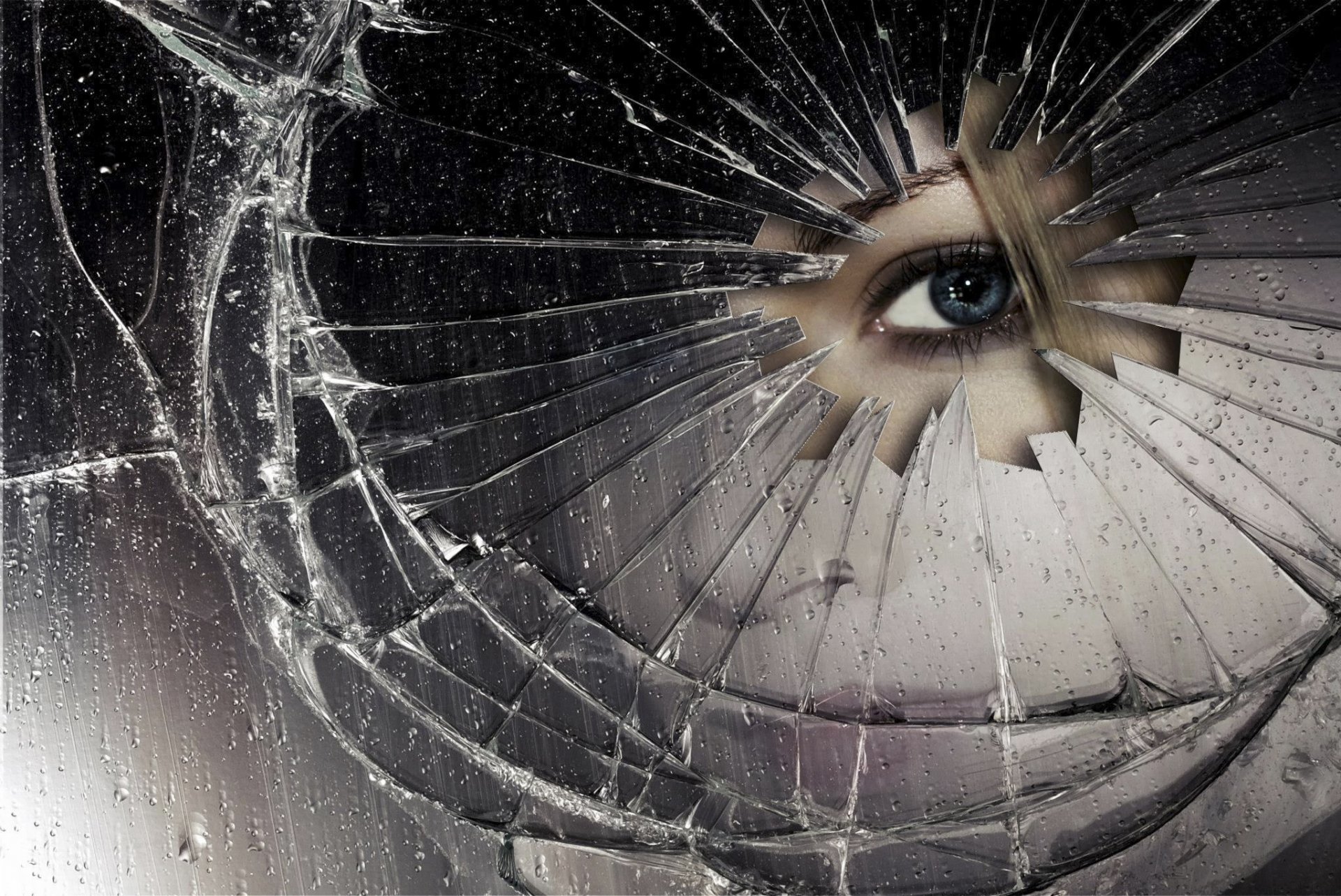 Image tags:mirror, of the crack, sharp edge, drops, eye