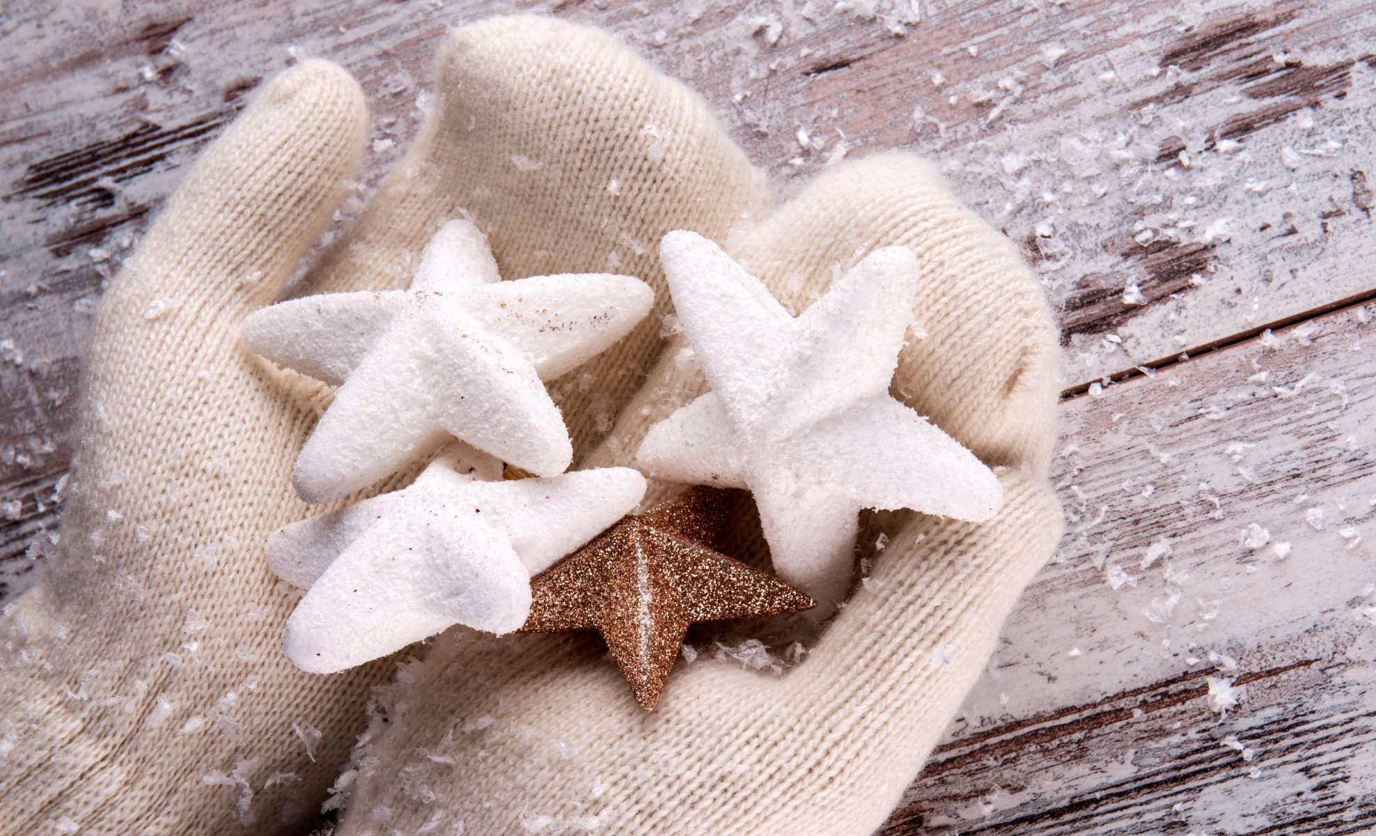 Winter fairy tale. Mittens with stars