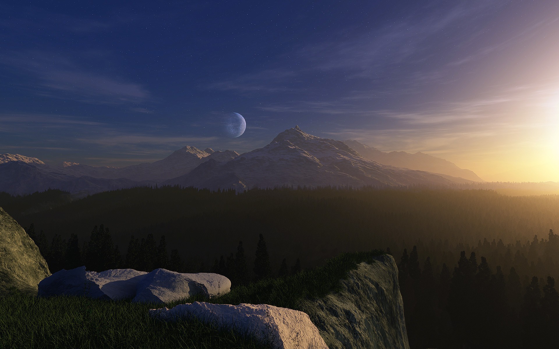 nature tree green foliage space planet star night1920 x 1180, 470 kB