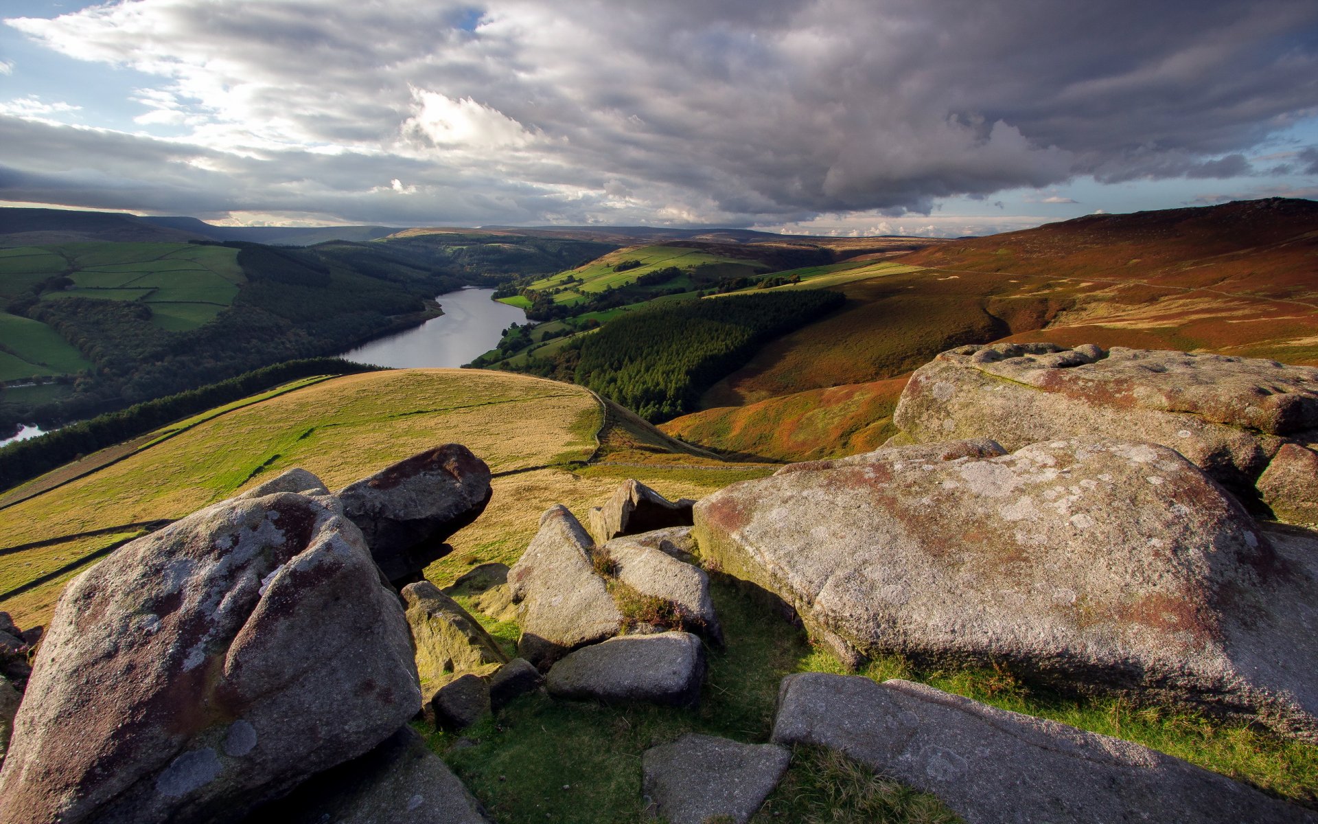 lake water of the field grass green hills mountain summer tree sky clouds nature landscape1920 x 1200, 480 kB