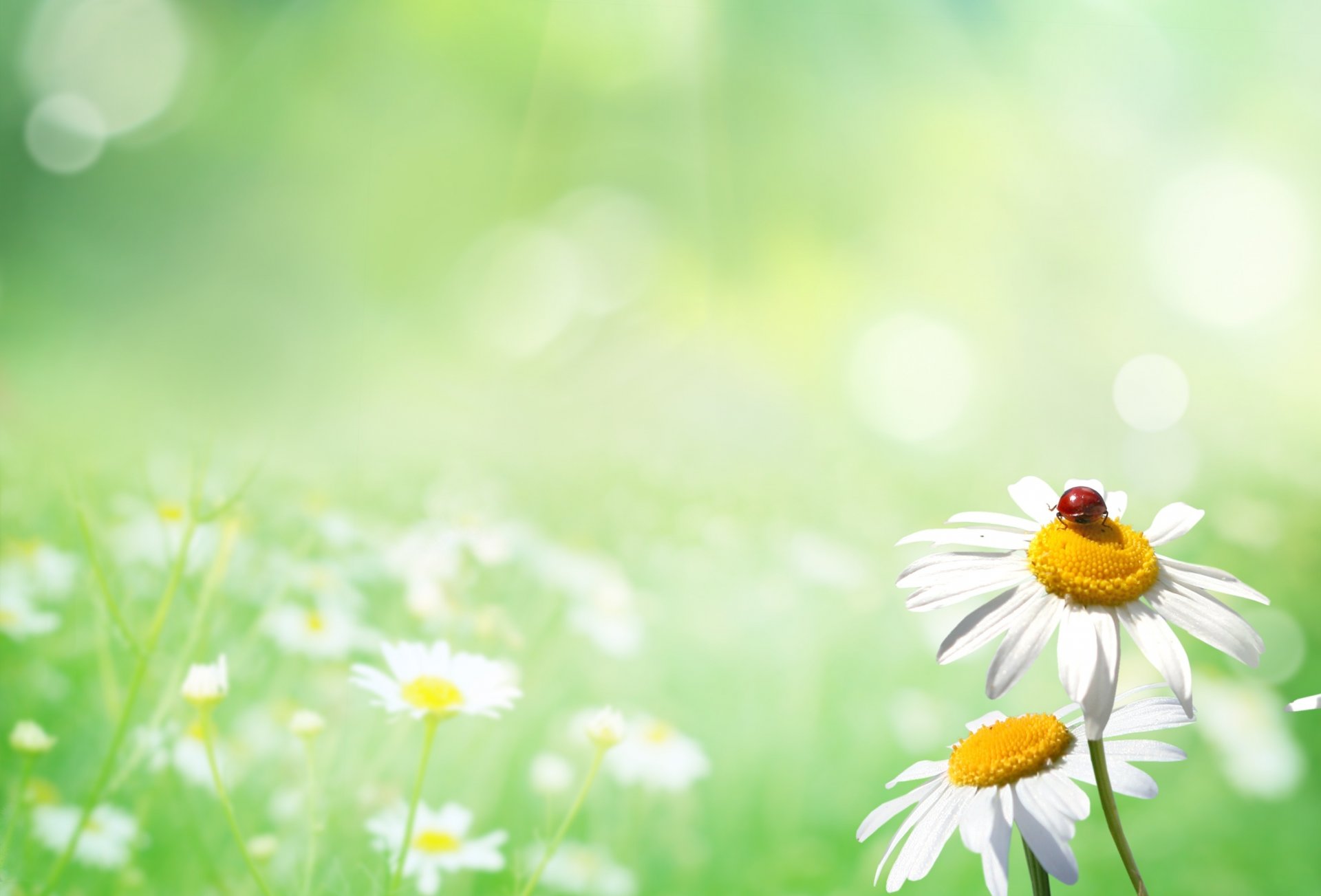 Glade with daisies and ladybug