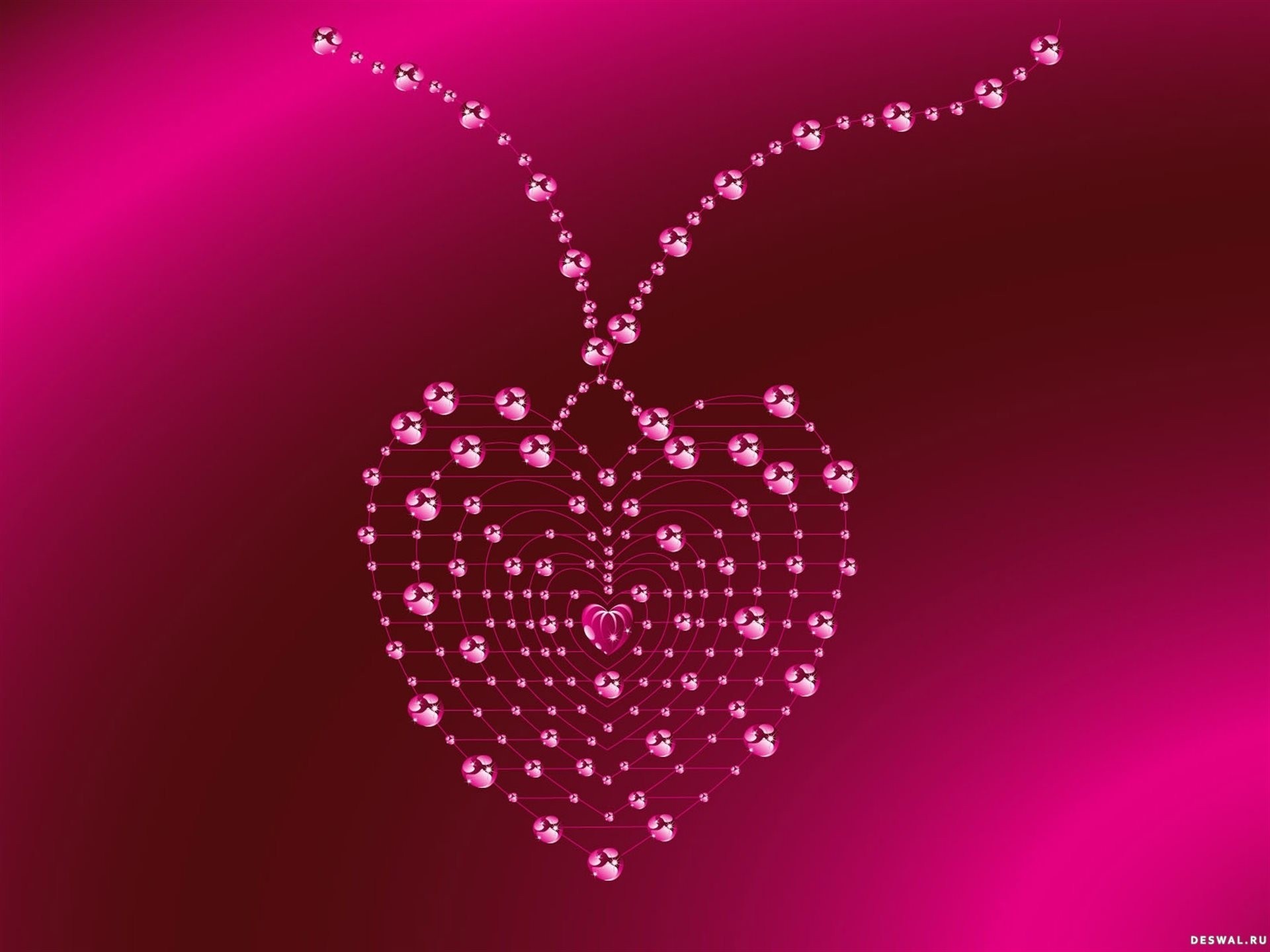 Necklace in the form of a heart on a crimson background