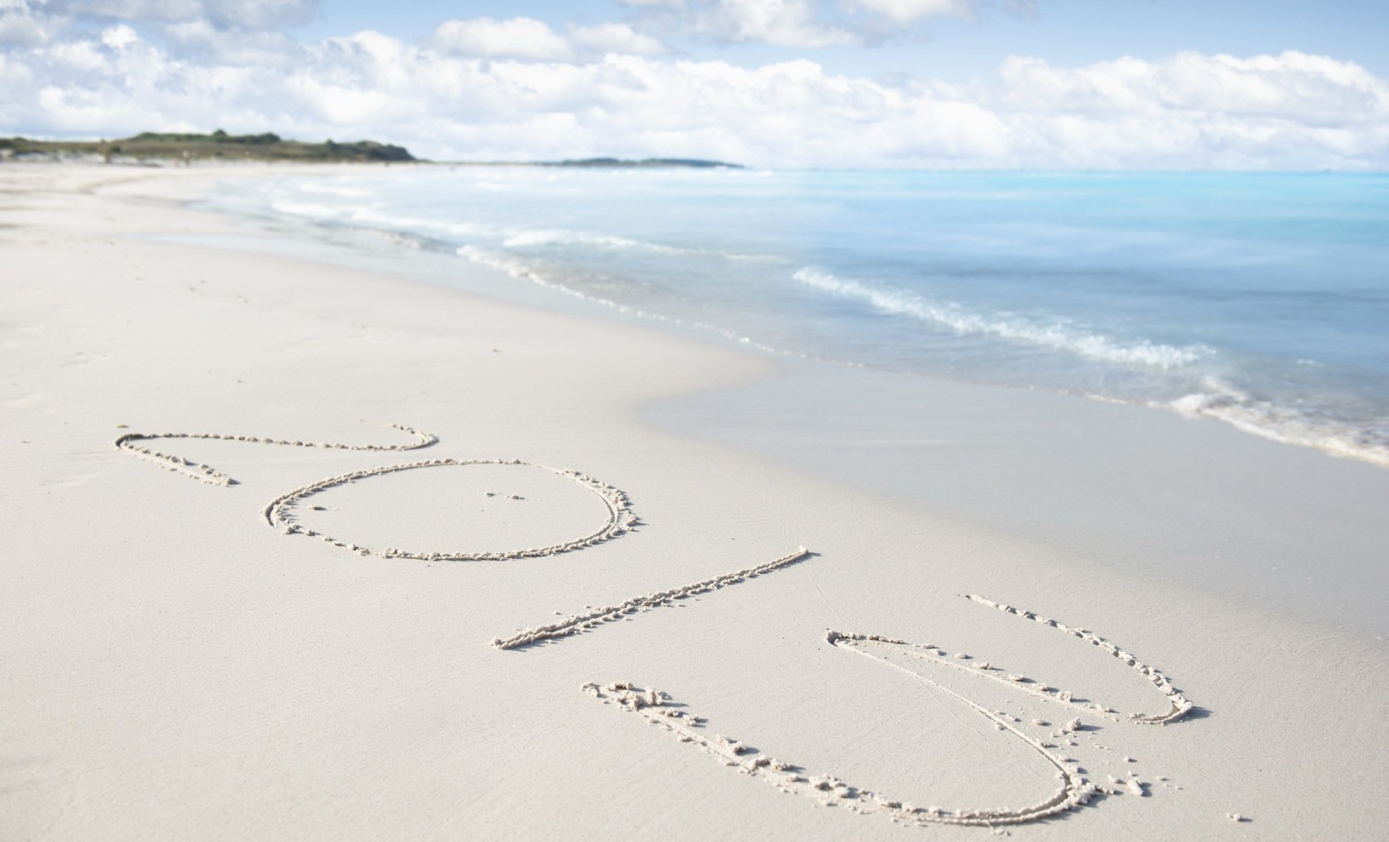 The inscription of 2013 on the sand on the beach near the sea