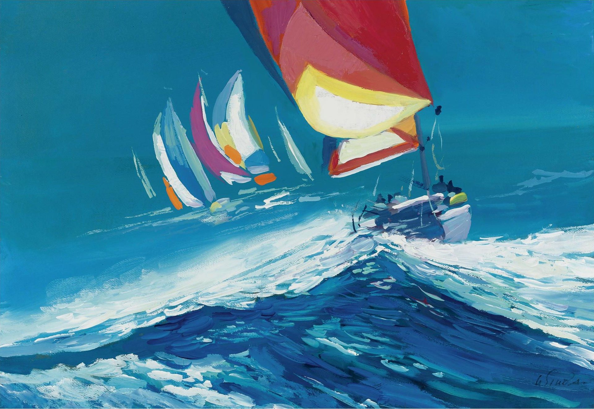 A picture of yachts going in one lane