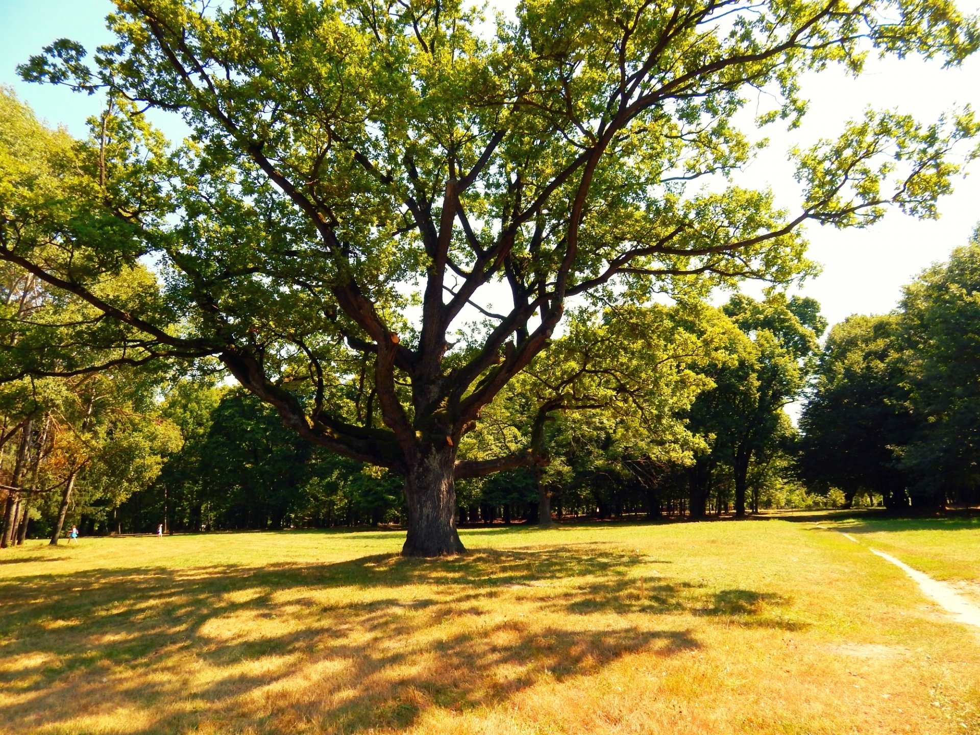 In summer, the shade of oak branches