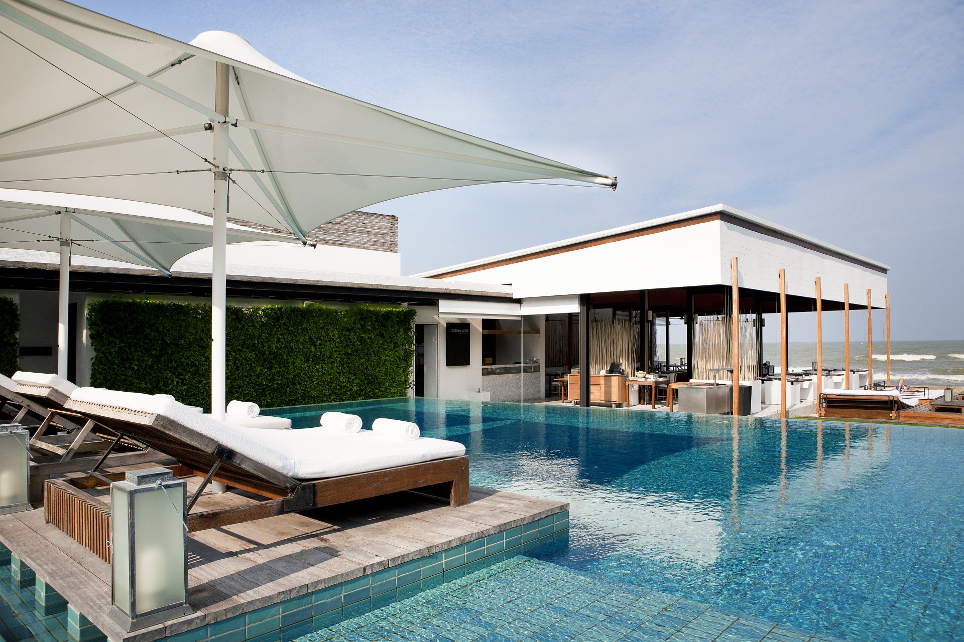 An exotic vacation by the ocean with a relaxing pool at the hotel