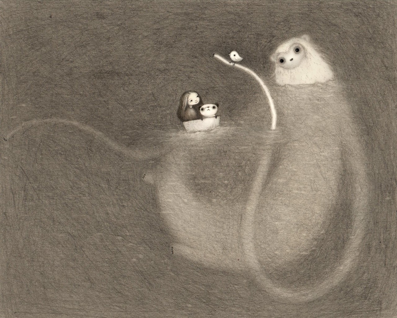 Artist's sketch - the creature and the boat