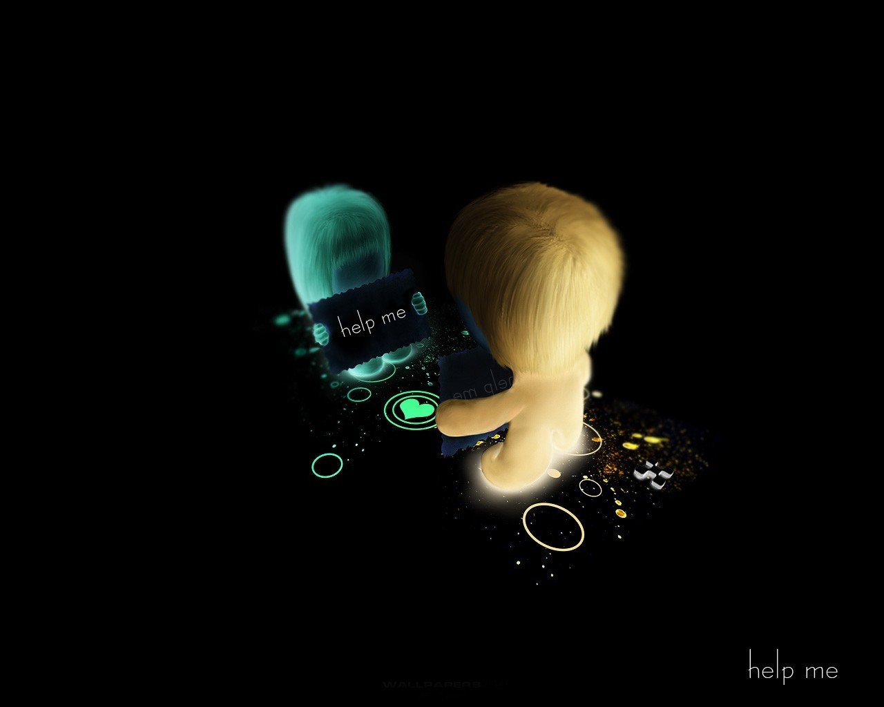 Two people on a dark background. Help mi