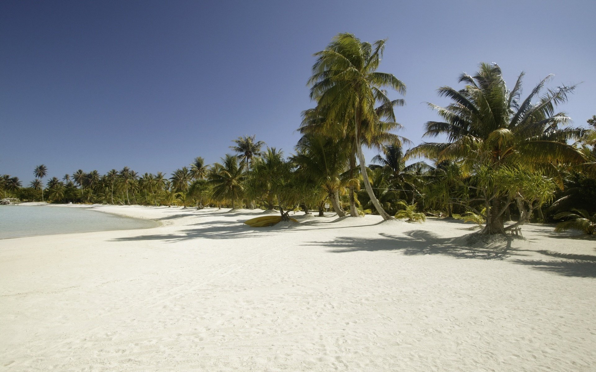 Palm trees on a white, sandy beach
