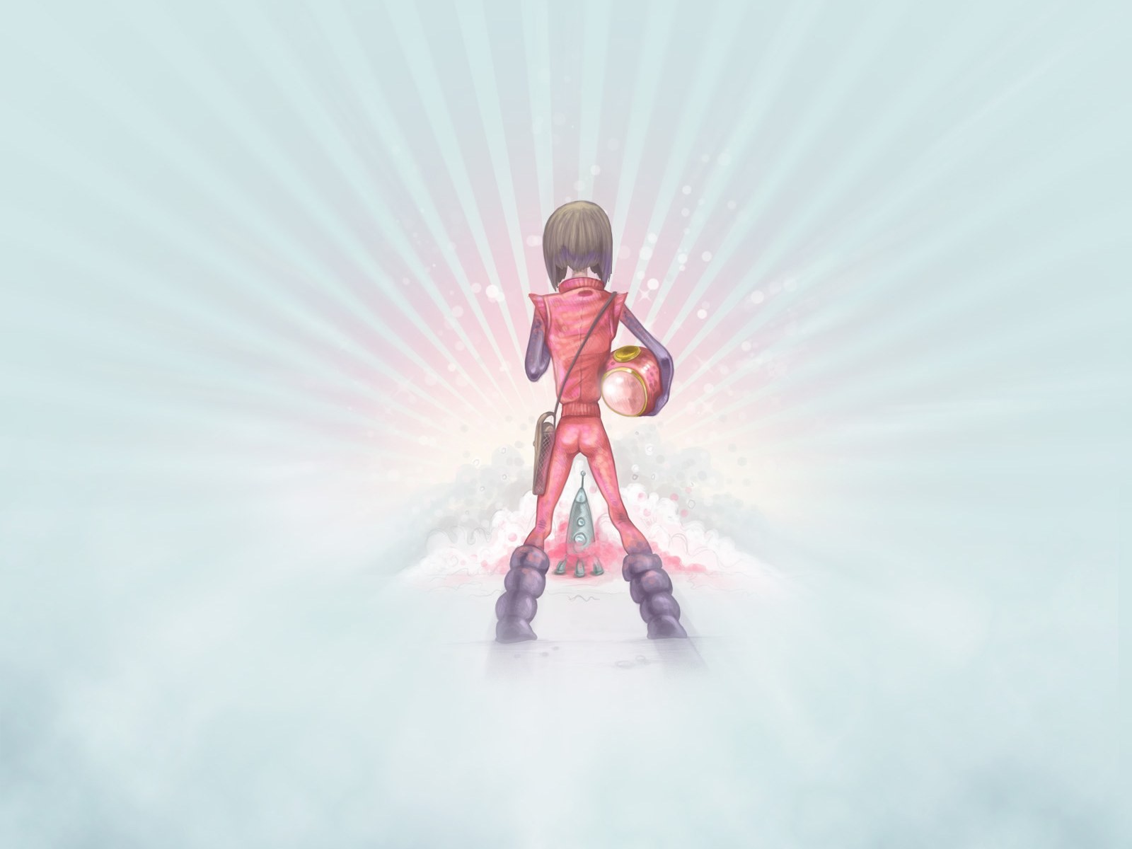 Pink elf with rocket back picture