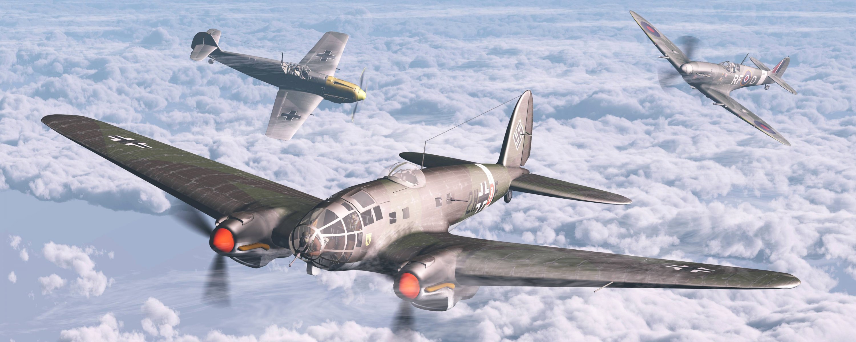 A squadron of fighter jets fly high above the clouds