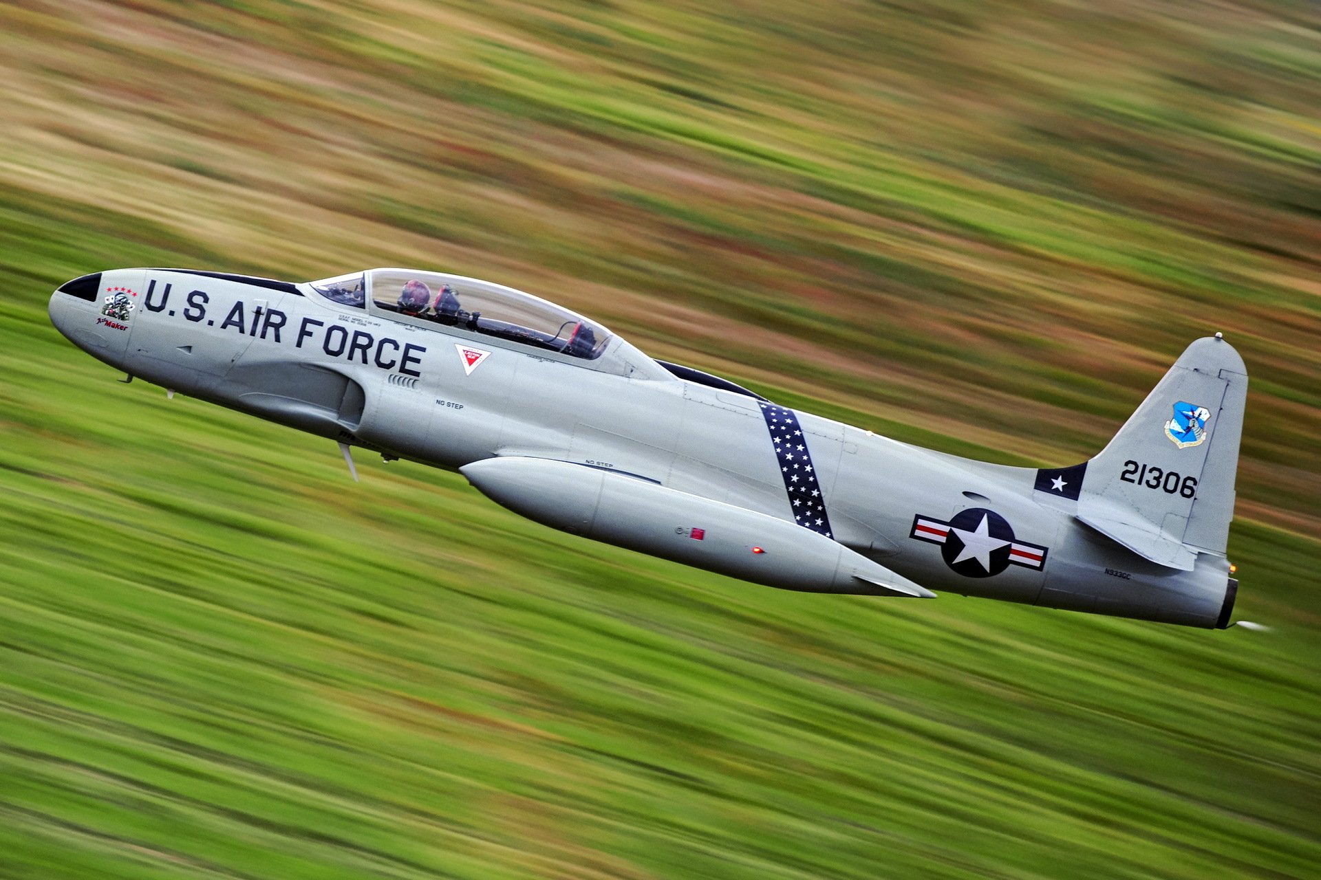 Lockheed T-33 Shooting Star Flies Low Over the Surface