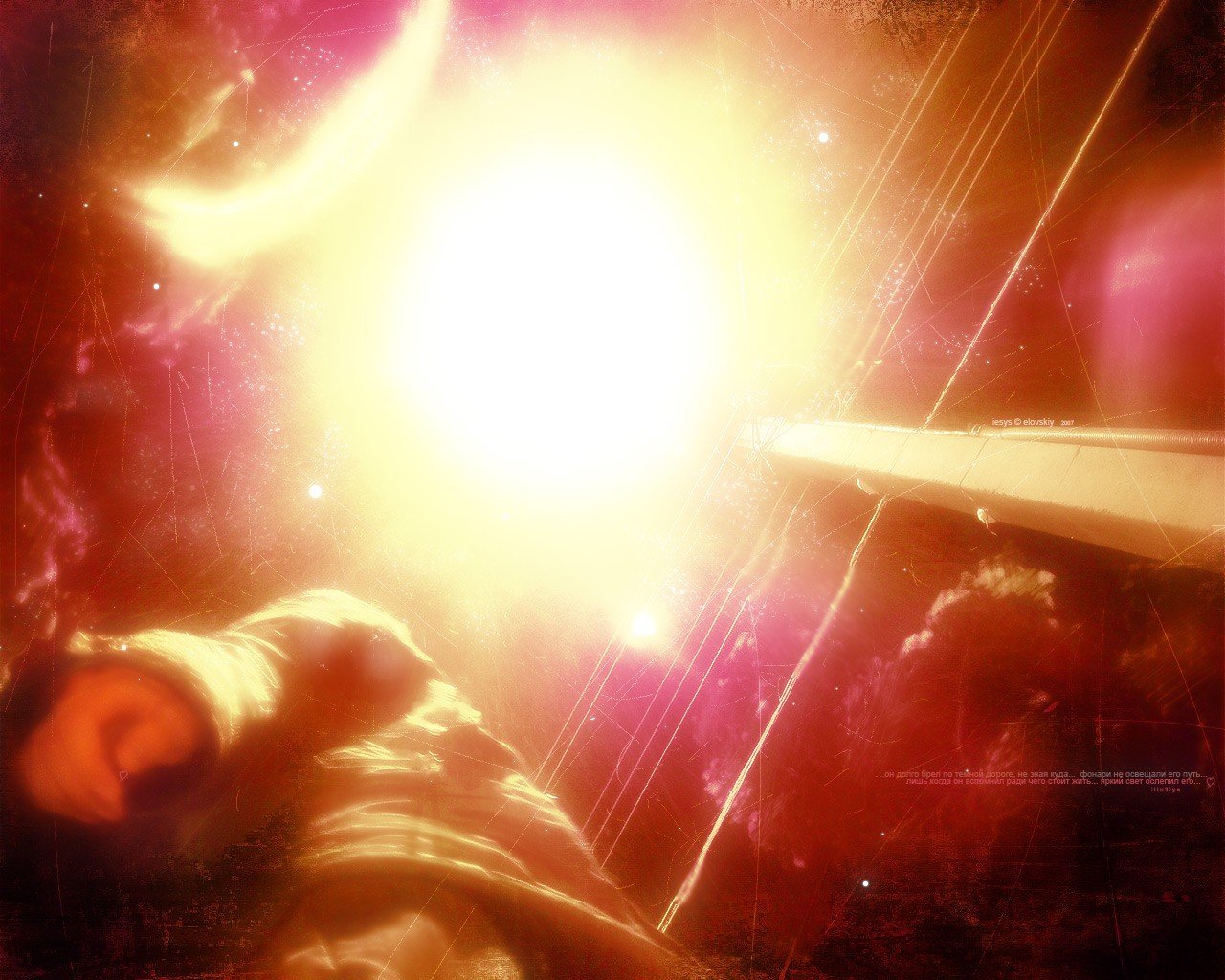 Bright light. The man at the lantern