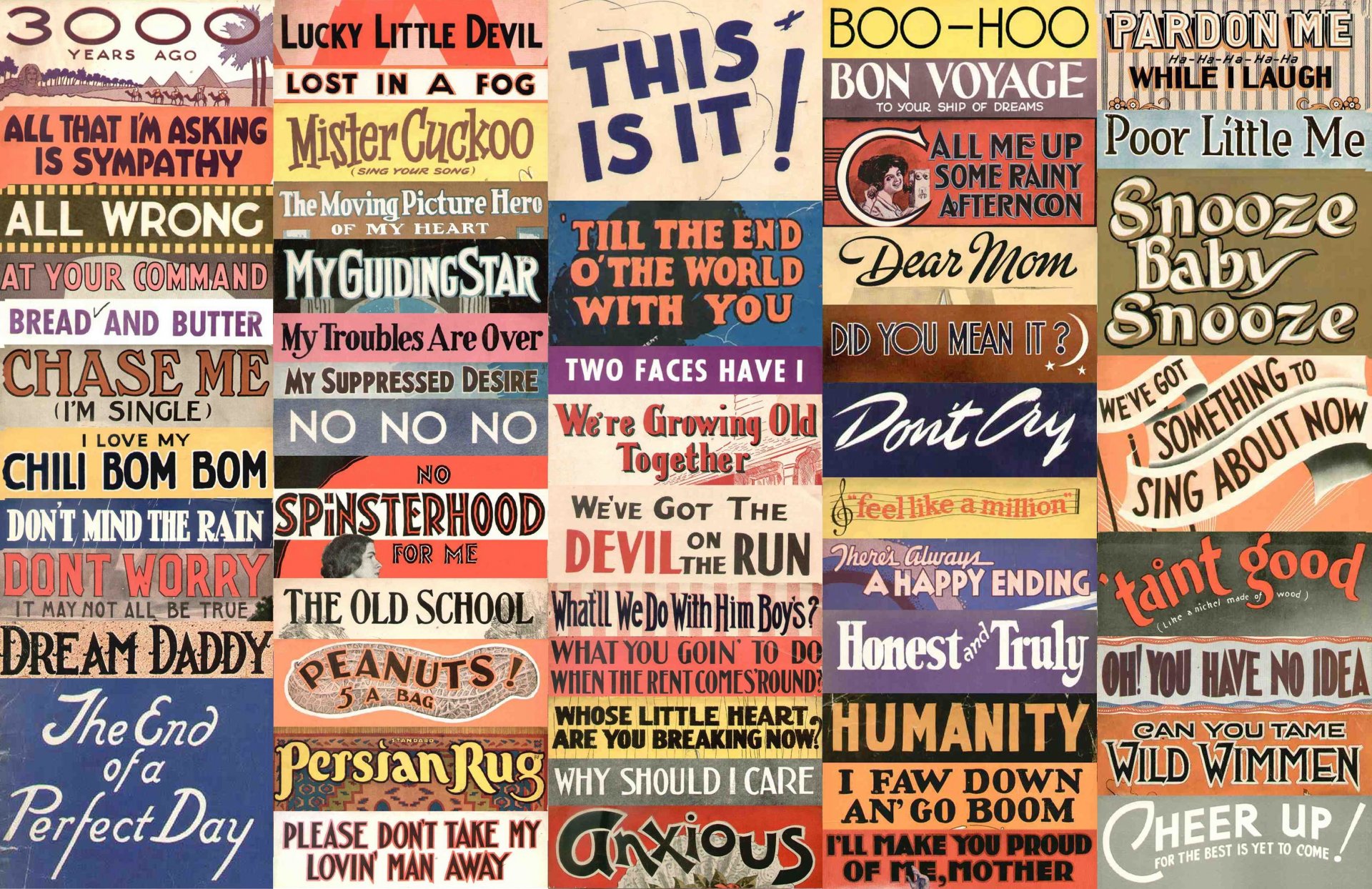 Collage of song and movie titles