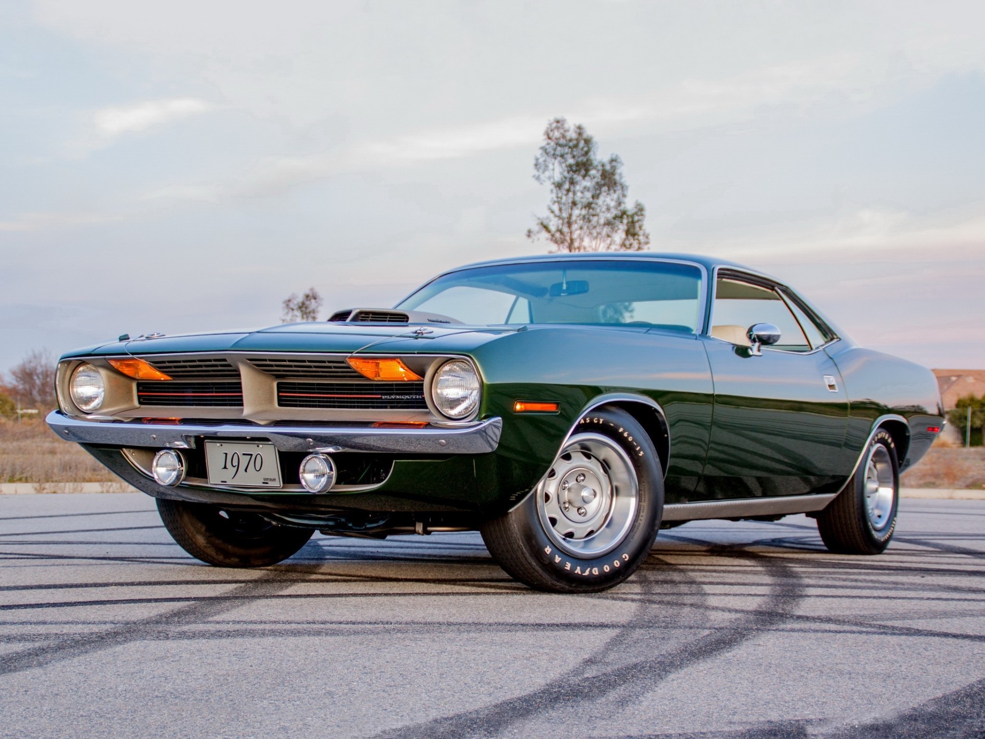 The power of the classic car is dark green