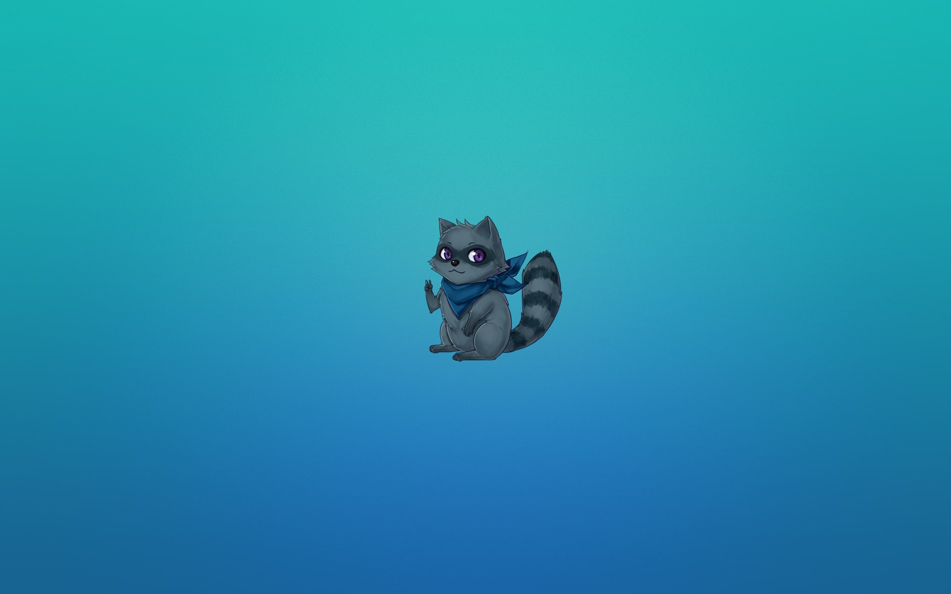 Image tags:raccoon, animals, anime, bluish background, tail, striped, gesture, peace, minimalism