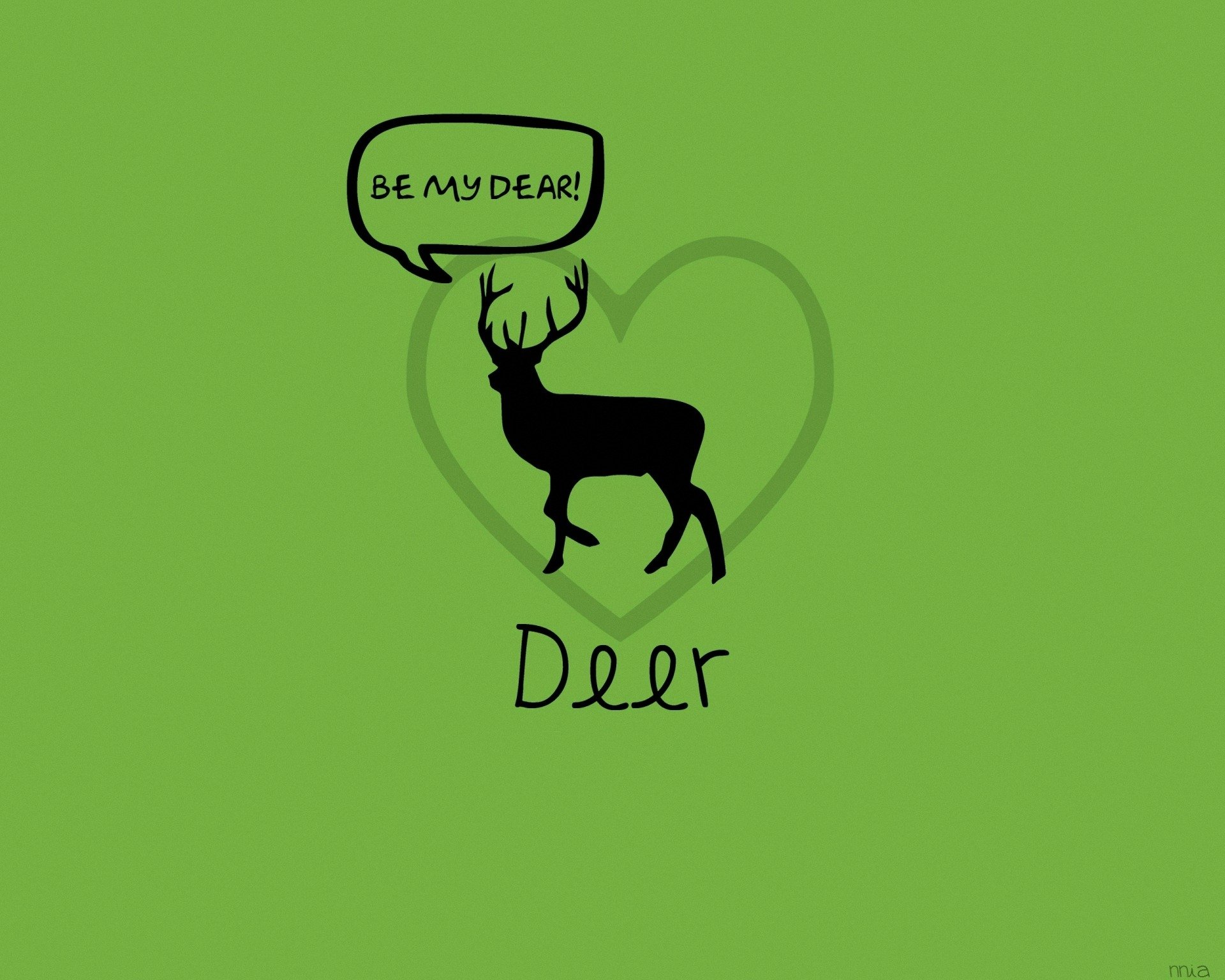 A play on the words deer and love on a green background