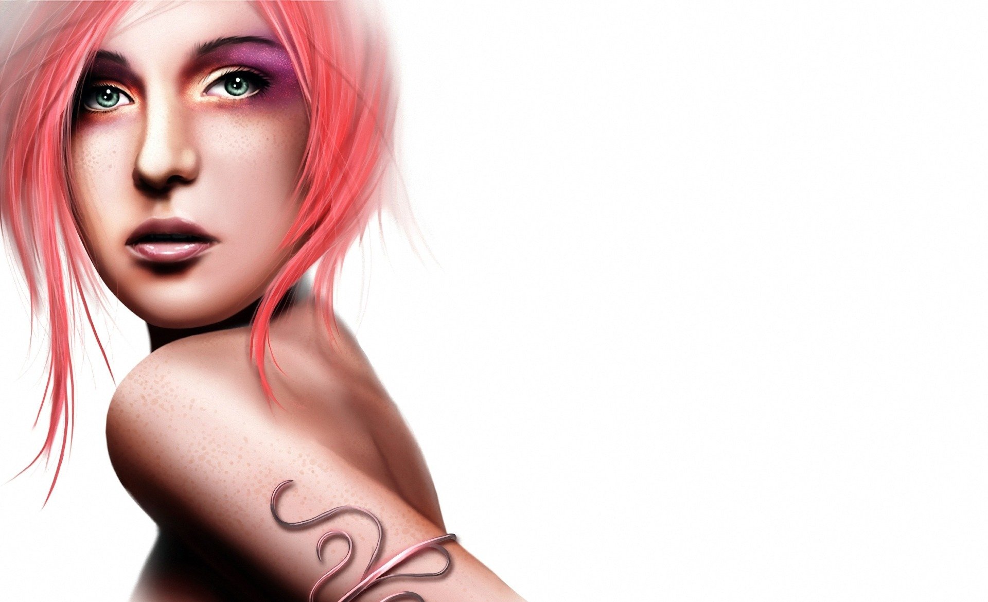 A girl with pink hair and green eyes