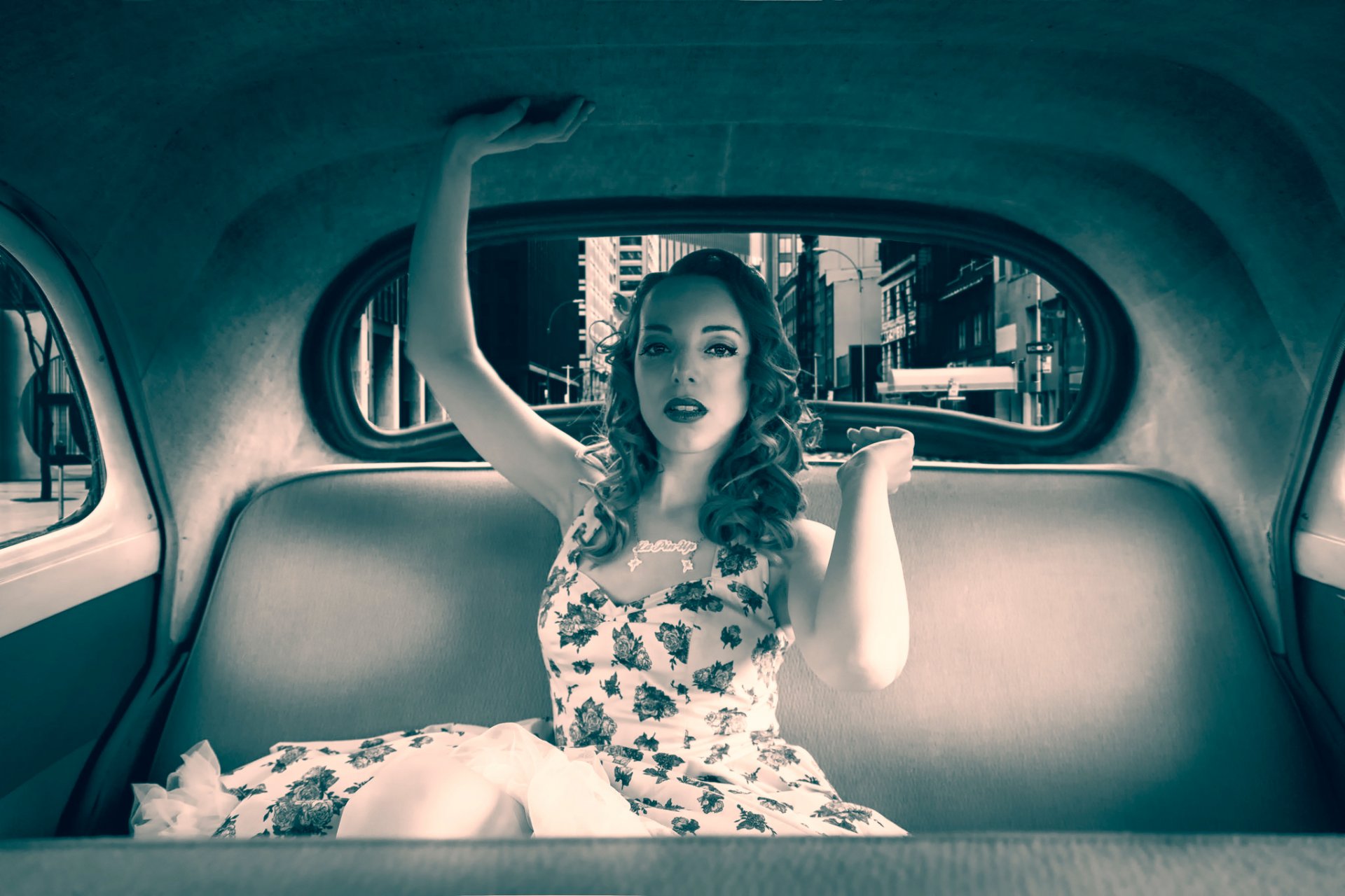 Beautiful girl in a retro car