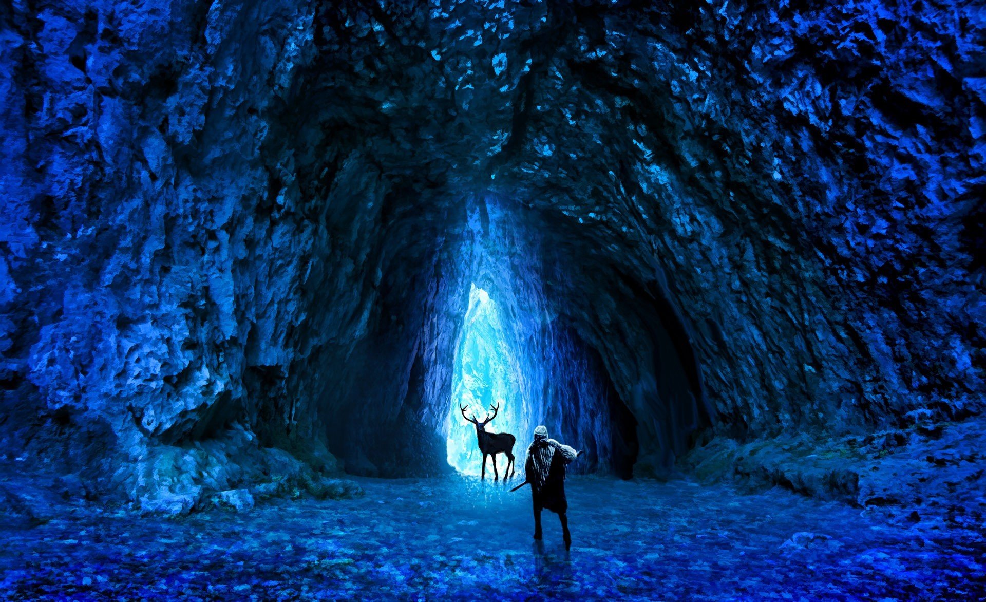 Image tags:romance of the apocalypse, romantically apocalyptic, alexiuss, art, cave, next, cool, man, weapon, reindeer