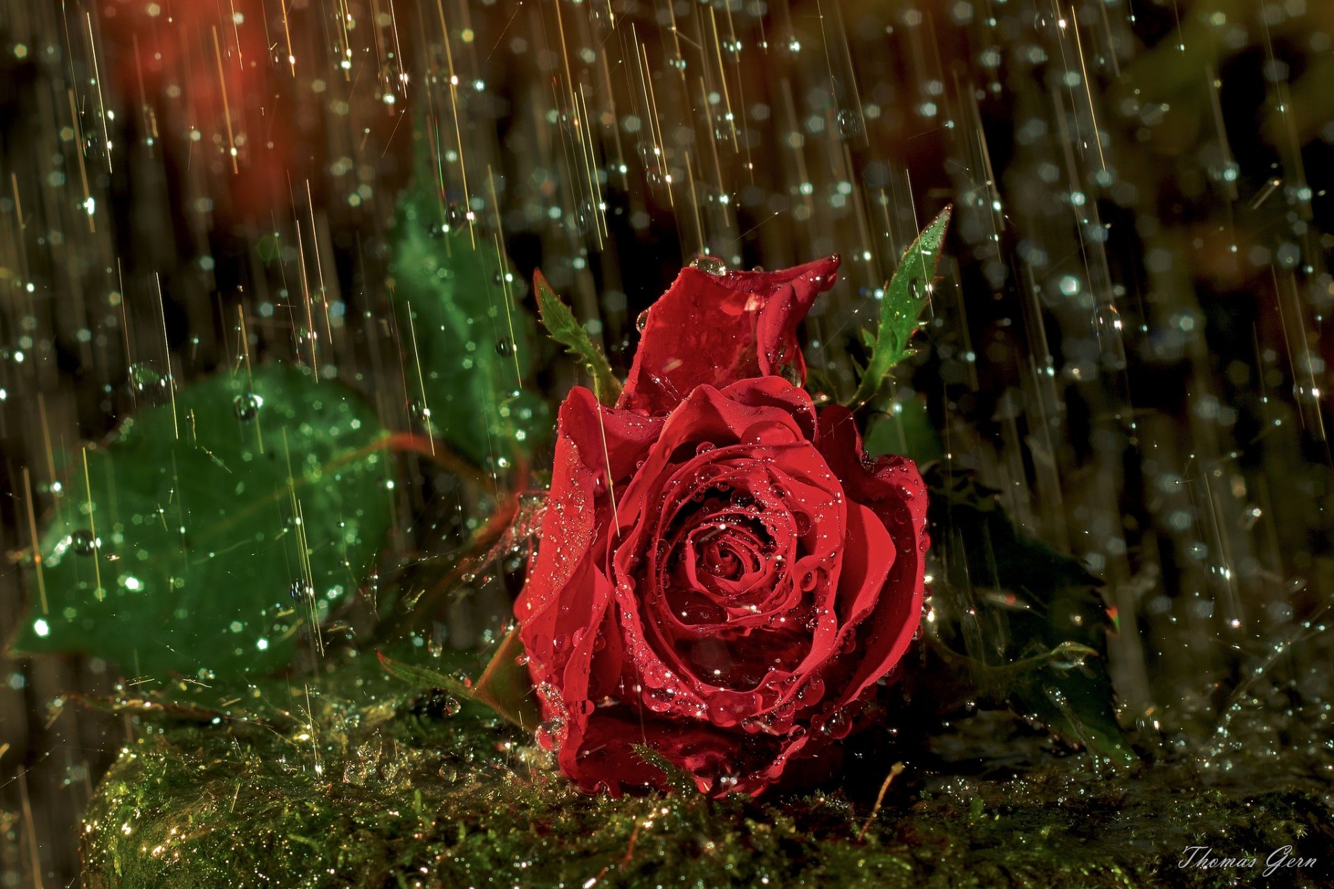Red rose, dew drops on the leaves1920 x 1318, 224 kB