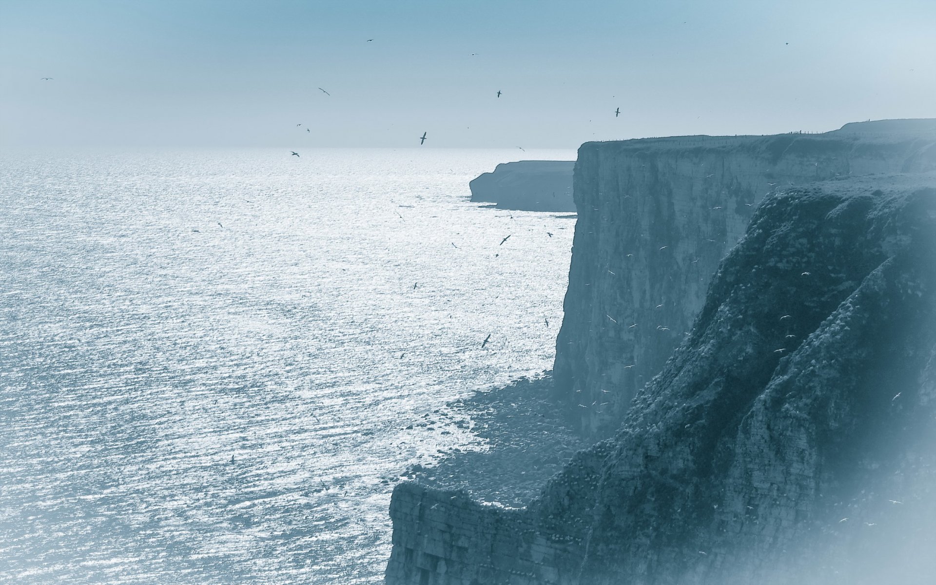 A steep cliff above the sparkling ocean