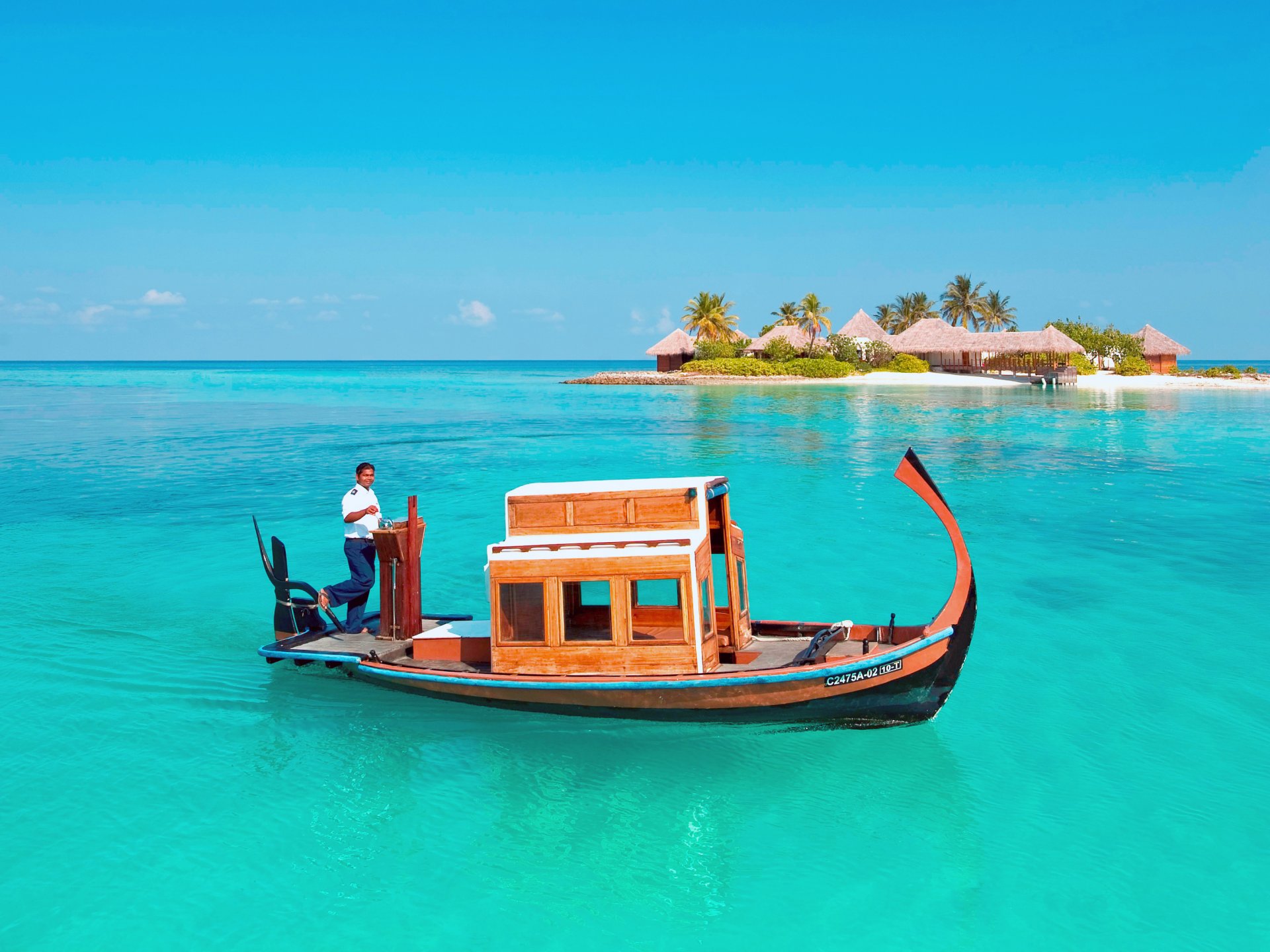 The skipper on the boat sails to the island