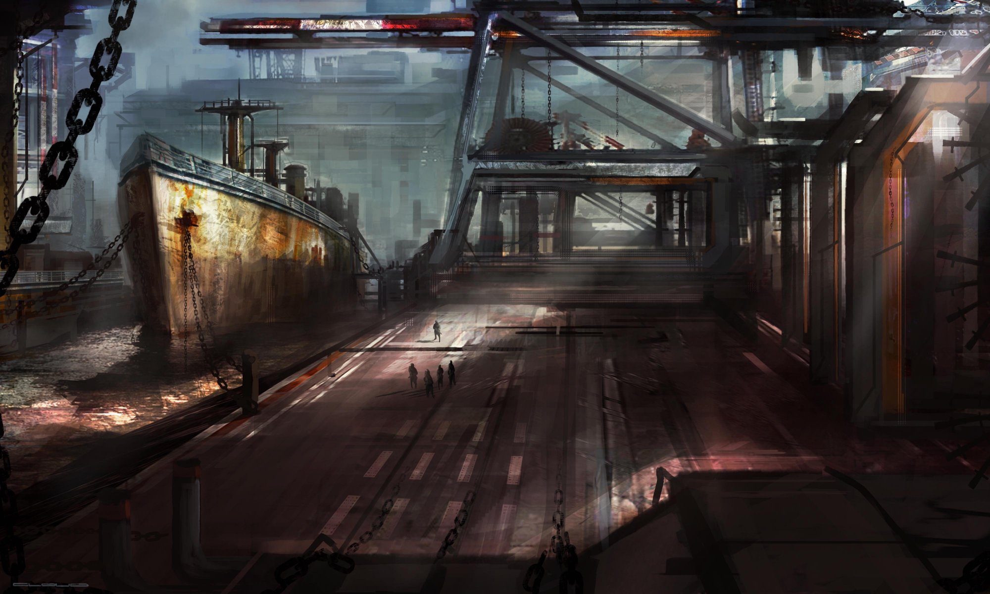 A gloomy place among the ships in the port