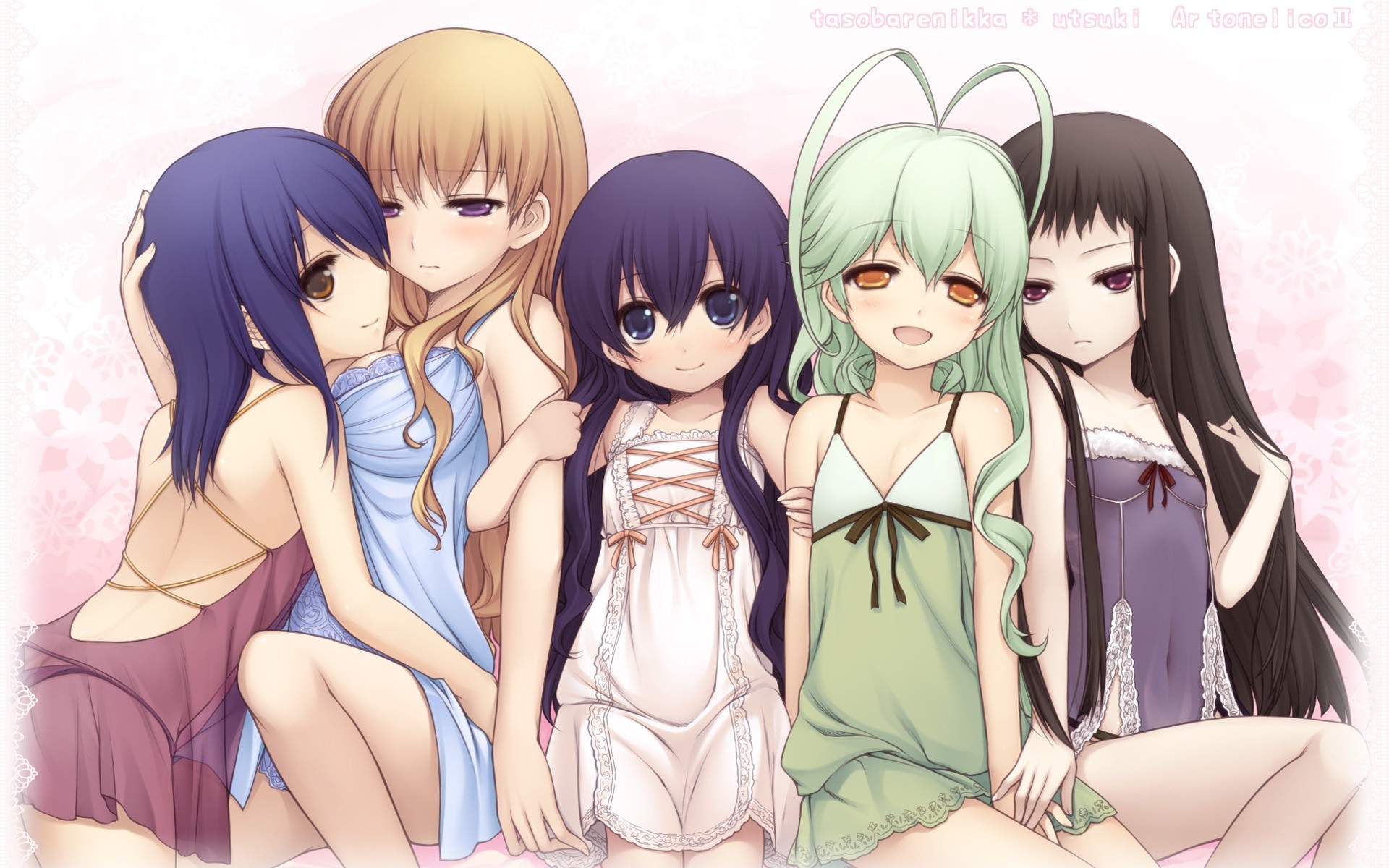 Image tags:short hair, long hair, the group, blonde hair, black hair, green hair, red eyes, purple hair, purple eyes, blue hair