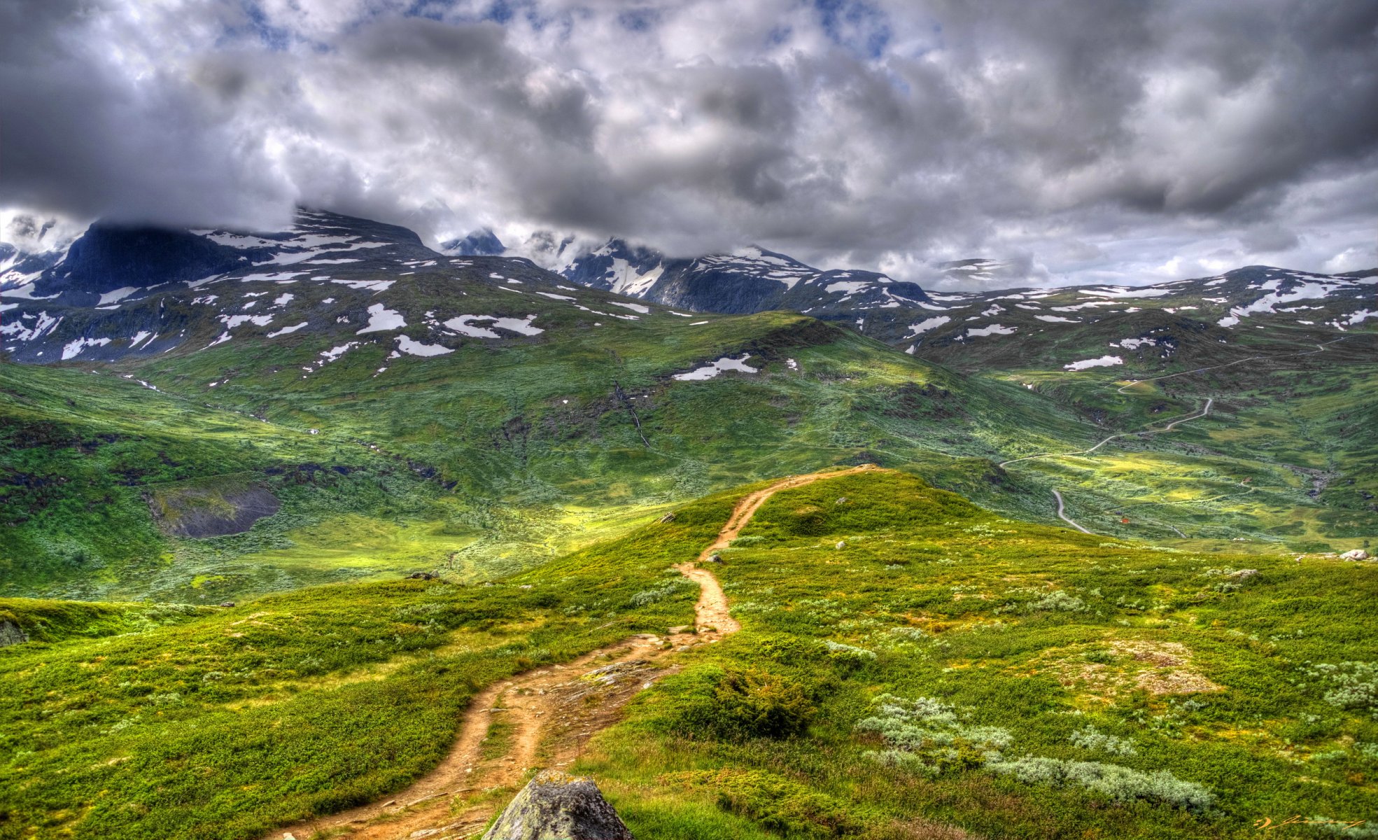 norway summer field grass tree hills green road sky clouds2048 x 1132, 688 kB
