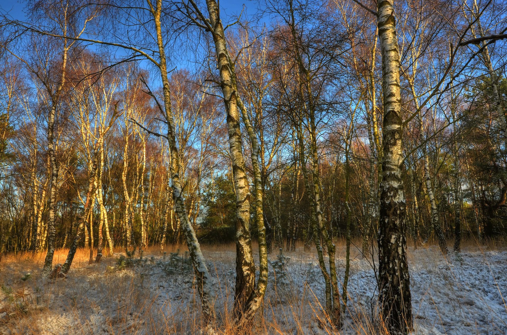Autumn birch grove under a blue sky