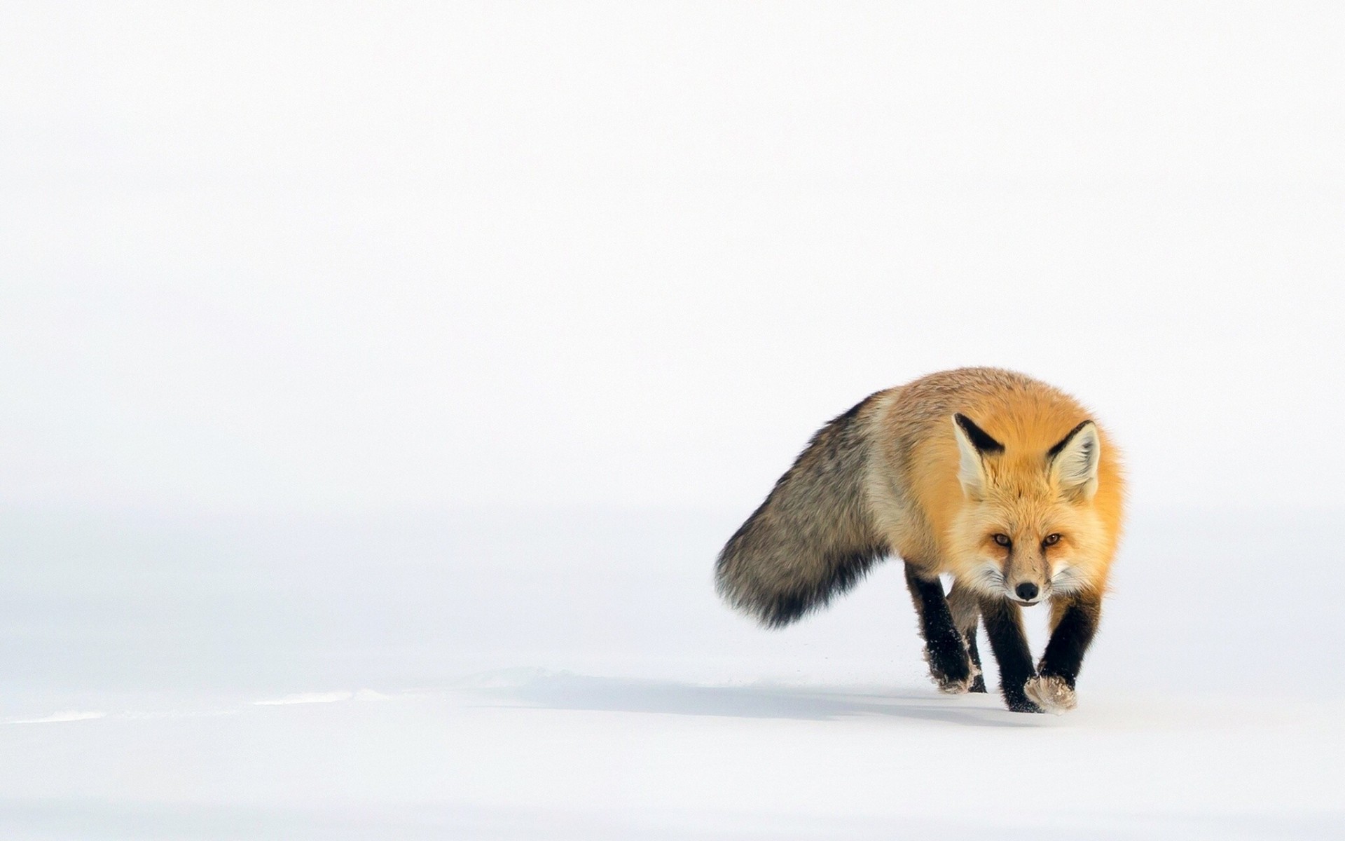 A red fox walks in the snow