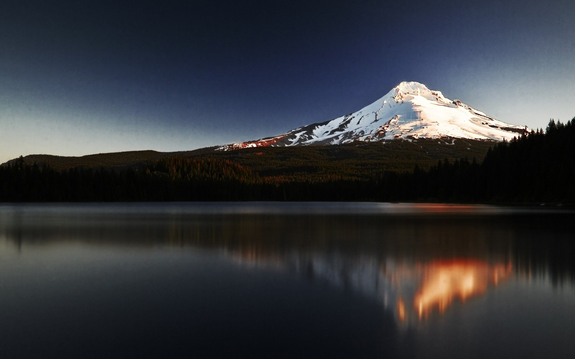 Snowy peak by the lake