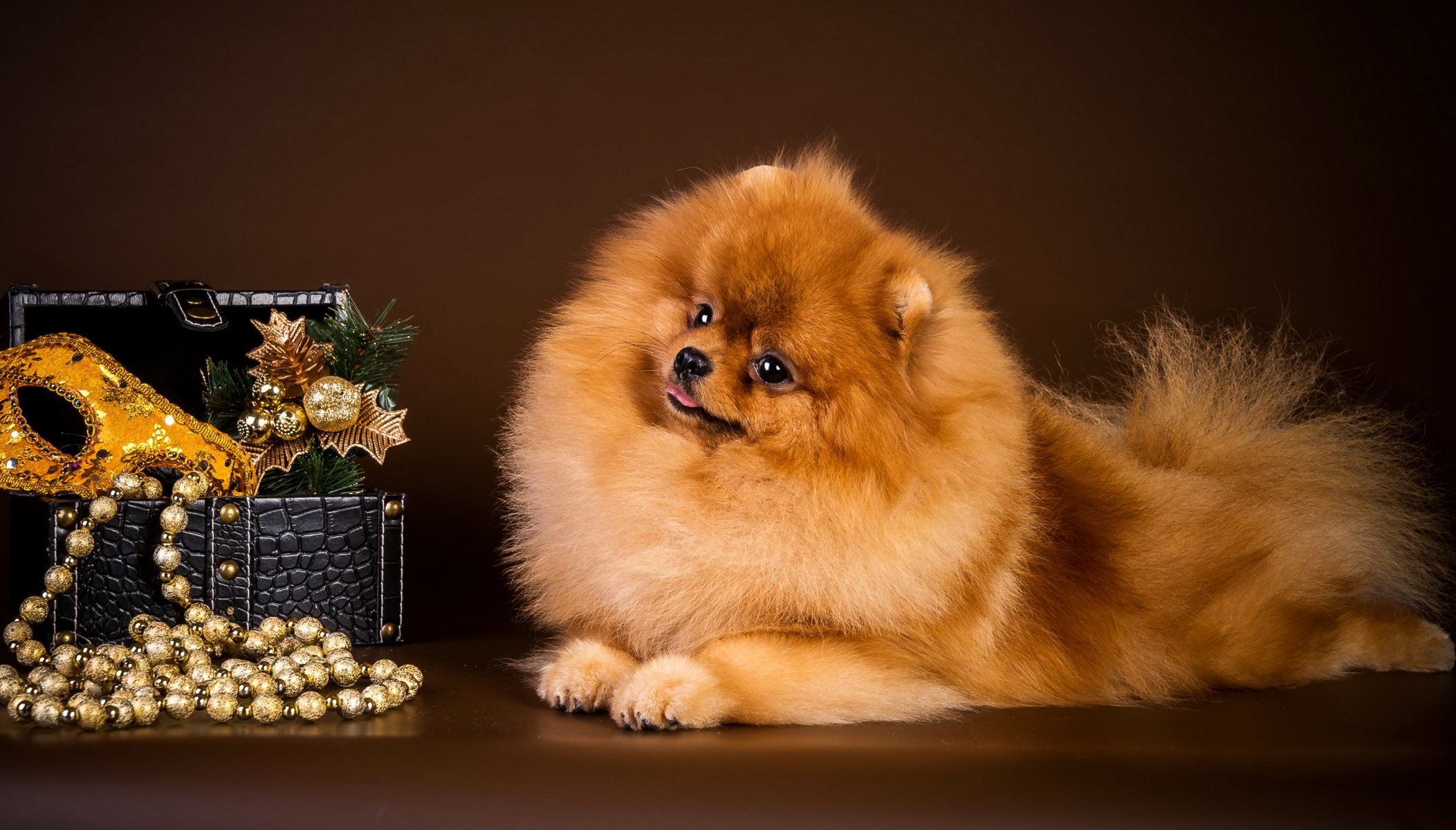 Admiring the pomeranian for the decoration of the hostess