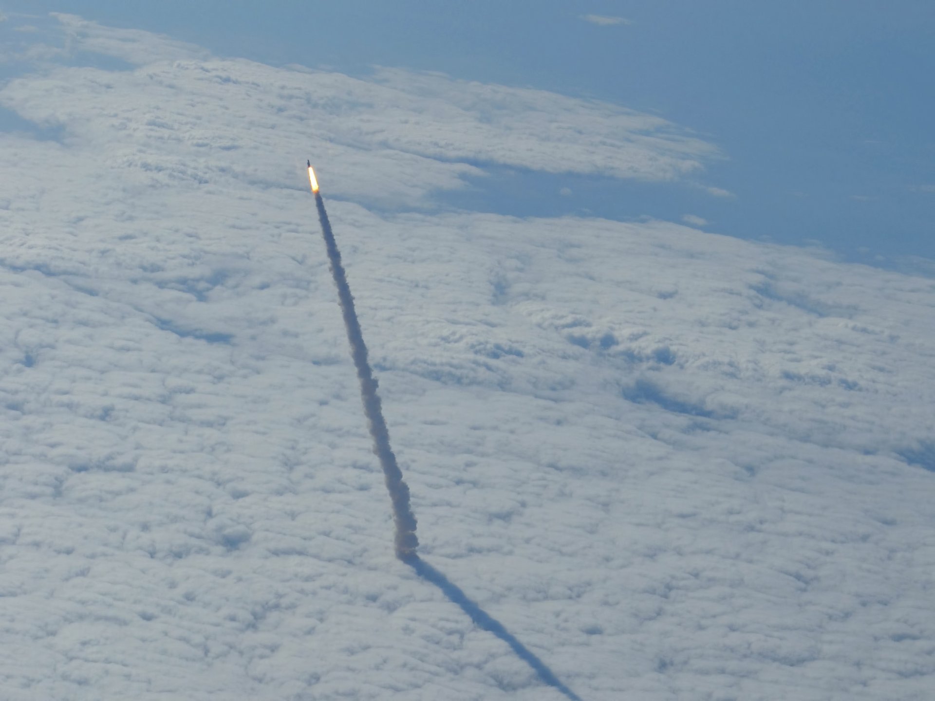 The launch of the shuttle into the stratosphere into space