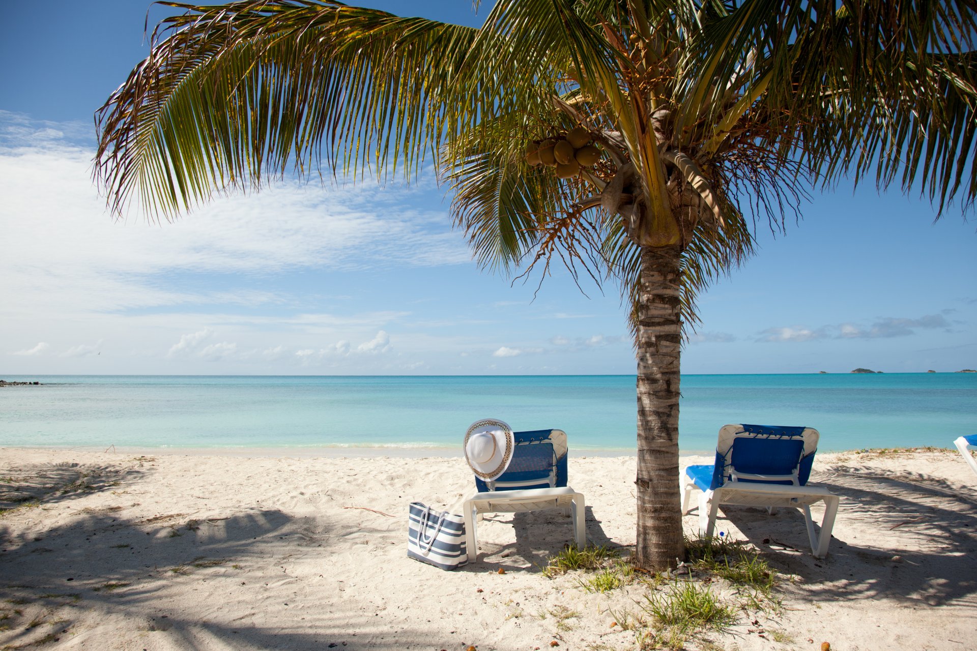 Summer vacation on the beach and the sun. The sand is warm, palm trees create shade