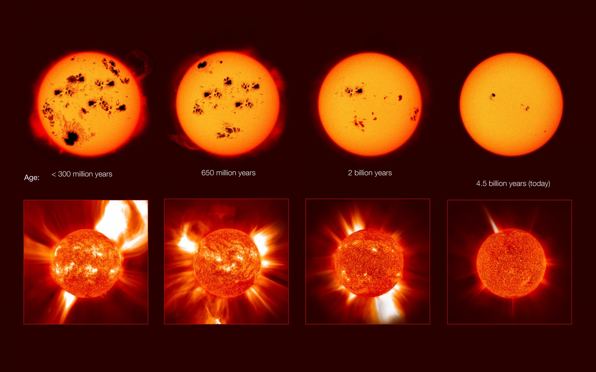 Image tags:sun, beginning, life, end, death, activity, protuberances, spots, crown