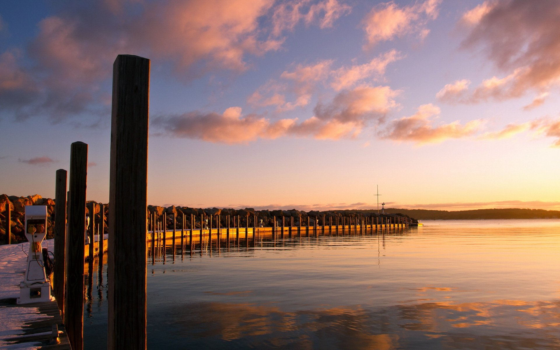 A long pier in the length of the entire lake