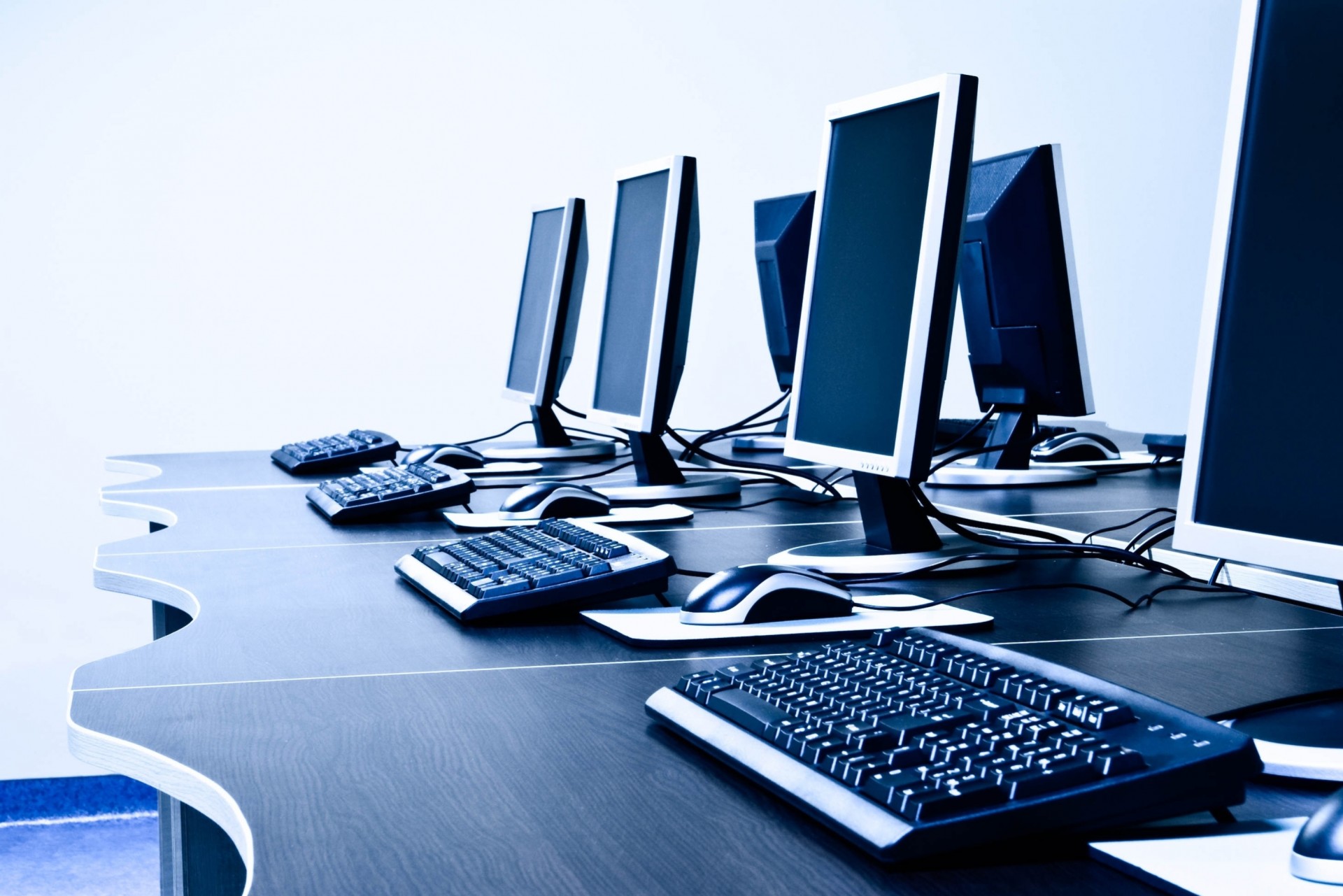 A row of computers on a table in the club